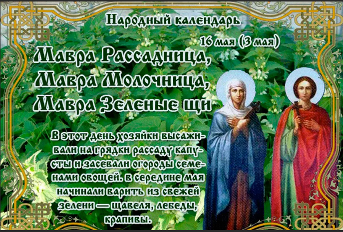 Народный праздник Мавра Рассадница отмечается 16 мая 2023 года (по старому стилю – 3 мая). В православном церковном календаре это дата памяти мученицы Мавры и ее мужа – мученика Тимофея, чтеца.
