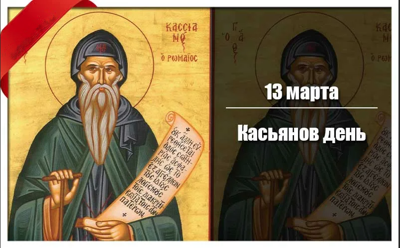 Народный праздник Касьянов день отмечается 13 марта (по старому стилю – 29 февраля). Празднование проходит только в високосный год. В православном календаре это дата почтения памяти преподобного Кассиана (Иоанна Кассиана) Римлянина, иеромонаха.