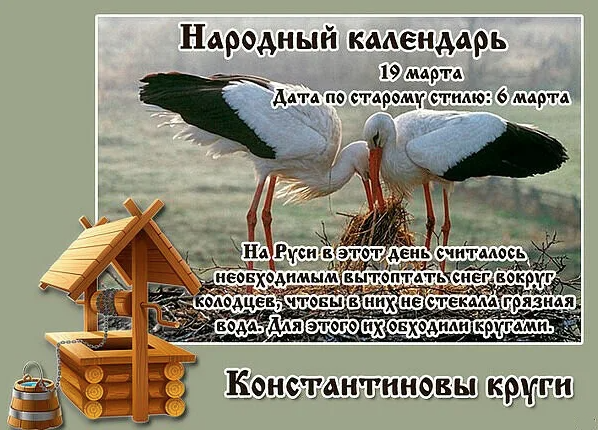 Народный праздник Константиновы круги отмечается 19 марта 2016 года (по старому стилю – 6 марта). В православном церковном календаре это дата почтения памяти 42-х мучеников из города Амморея – Константина и прочих