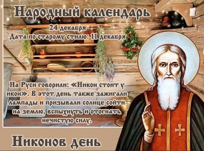 Народный праздник Никонов день отмечается 24 декабря 2022 года (по старому стилю – 11 декабря). В церковном календаре это дата почтения памяти преподобного Никона Печерского, игумена Киево-Печерской лавры.