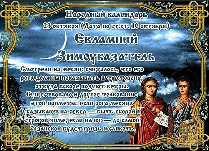 23 октября 2022 года (дата по старому стилю – 10 октября) прихожане православной церкви чтут память святых мучеников Евлампия и Евлампии. В народе этот день получил название Евлампий Зимоуказатель,