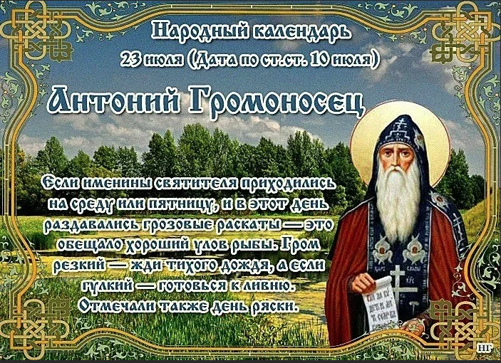 Народный праздник Антоний Громоносец отмечается 23 июля 2022 года (по старому стилю – 10 июля). По церковному календарю это дата почтения памяти преподобного Антония Печерского.