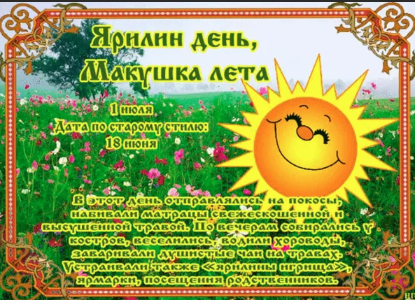 Народный праздник Ярилин день отмечается 1 июля 2022 года (дата по старому стилю – 18 июня). Он посвящен славянскому богу солнца. «Макушкой лета» народ назвал этот день потому, что он как раз приходится на самую жаркую пору сезона.