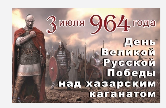 3 Липня (июля) 964 года дружина князя русов - Святослава Игоревича (Хороброго) из рода Рюриковичей одержала сокрушительную победу над войском хазарского кагана.