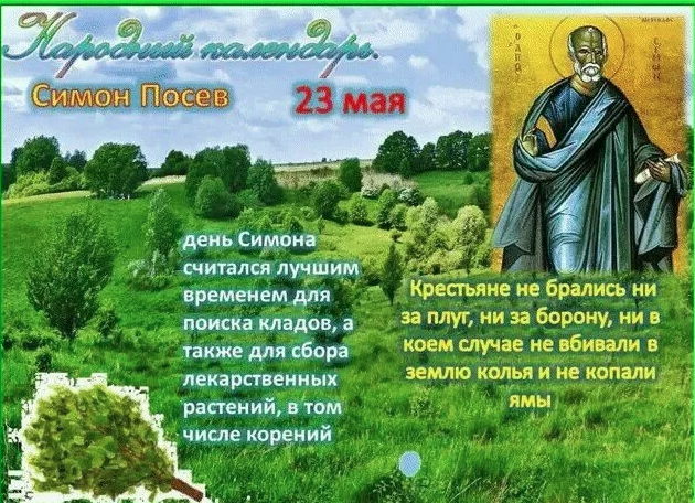 Народный праздник Симонов день отмечается 23 мая 2022 года (дата по старому стилю – 10 мая). По церковному календарю в этот день почитают апостола Симона Зилота, Кананита.