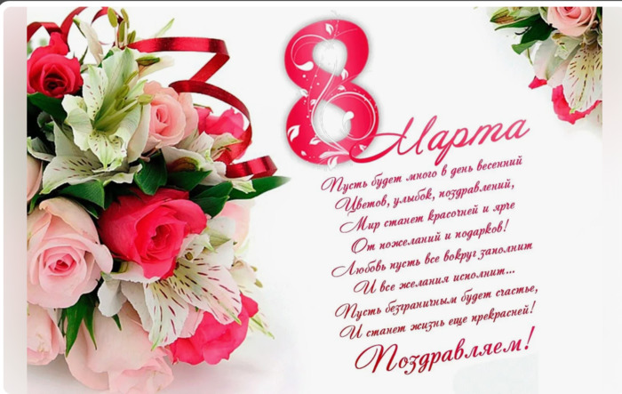 ТЕЛЕГРАММ замедляется.Вероятно скоро его заблокируют.Чтобы не потерять нас и получать оперативно информаци. подпишись на наши каналы в МАХ.Кто еще не подписался В полностью Российской сети МАХ на каналы ВОЕННЫЕ ПЕНСИОНЕРЫ ЗА РОССИЮ И ЕЕ ВООРУЖЕННЫЕ СИЛЫ: Канал для Военных пенсионерах без войны и политики, Военных пенсиях,пенсиях жен военных пенсионеров ,жизни военных пенсионеров и о способах прожить дольше : https://max.ru/voennyepen За Родину .Мы победим.: Оперативная информация О Спецоперации ,политике на канале: https://max.ru/join/aXh9SdoNhgk2rhy901ENolzCyoGLJhMgpon7E6np9n0 СРОЧНО ПОДПИСЫВАЙСЯ и ты будешь в курсе оперативных событий.НЕ пропусти!!! Дата в 2024 году: 8 марта , пятница Празднуется: в России, Украине, Беларуси и других странах Названия праздника, кем учрежден: Международный женский день ст. 112 Трудового кодекса РФ Международный женский день ст. 73 КЗоТ Украины День женщин Указ Президента Республики Беларусь № 157 от 26.03.1998 Другие названия: 8 Марта, Международный день борьбы за права женщин и международный мир Значение: солидарность трудящихся женщин в борьбе за уравнение в правах с мужчинами Традиции: поздравления, подарки женщинам (цветы, открытки, конфеты), акции феминисток Международный женский день 2024 отмечается 8 марта. Во многих странах этот праздник проводится на государственном уровне и является официальным выходным днем. Он посвящен началу весны, женственности и роли представительниц прекрасного пола в жизни общества. Ежегодно ООН в этот день отмечает Международный день борьбы за права женщин и международный мир. История праздника История события берет начало 8 марта 1857 года, когда в Нью-Йорке прошел «марш пустых кастрюль» работниц текстильной промышленности. Своей акцией они обратили внимание общественности на ущемление прав по половому признаку. Участницы марша выступили за улучшение условий труда и его оплаты. В начале ХХ века проходили многочисленные акции в защиту прав представительниц слабого пола. В ходе мероприятий высказывались требования о равенстве женских и мужских прав и сокращении продолжительности рабочего дня. В 1910 году Клара Цеткин предложила учредить Международный женский день. В Российской империи праздник впервые отметили в 1913 году. 8 марта (23 февраля по старому стилю) 1917 года в Петрограде (ныне Санкт-Петербург) прошла забастовка текстильщиц. Они требовали равноправия с мужчинами. Это событие стало началом Февральской революции, которая привела к свержению монархии. В 1966 году 8 марта стало нерабочим днем в СССР. В 1975 году по решению ООН праздник приобрел официальный статус Международного женского дня. В России статус 8 Марта как нерабочего праздничного дня закреплен ст. 112 Трудового кодекса РФ от 30.12.2001 г. С момента первых протестов за женское равноправие праздник с каждым годом утрачивал политическую окраску и стал днем, когда чествуют всех женщин. Традиции и обряды праздника В Международный женский день проводятся парады, конференции, выставки, посвященные правам женщин. Феминистические течения устраивают мероприятия, на которых освещают проблемы гендерного неравноправия в обществе, домашнего насилия, занижения заработной платы. На 8 Марта принято дарить женщинам подарки, открытки, шоколадные конфеты и первые весенние цветы: подснежники, тюльпаны, нарциссы. В этот праздник мужчины берут на себя женские обязанност
