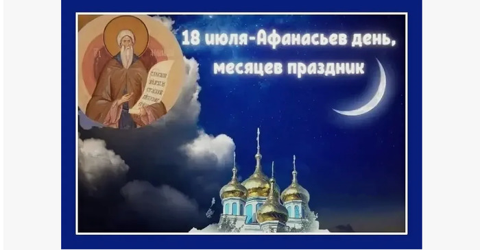 ТЕЛЕГРАММ замедляется.Вероятно скоро его заблокируют.Чтобы не потерять нас и получать оперативно информаци. подпишись на наши каналы в МАХ.Кто еще не подписался В полностью Российской сети МАХ на каналы ВОЕННЫЕ ПЕНСИОНЕРЫ ЗА РОССИЮ И ЕЕ ВООРУЖЕННЫЕ СИЛЫ: Канал для Военных пенсионерах без войны и политики, Военных пенсиях,пенсиях жен военных пенсионеров ,жизни военных пенсионеров и о способах прожить дольше : https://max.ru/voennyepen За Родину .Мы победим.: Оперативная информация О Спецоперации ,политике на канале: https://max.ru/join/aXh9SdoNhgk2rhy901ENolzCyoGLJhMgpon7E6np9n0 СРОЧНО ПОДПИСЫВАЙСЯ и ты будешь в курсе оперативных событий.НЕ пропусти!!! В Телеграмм создана группа " Военные пенсионеры за Россию и ее ВС. Мы победим". У кого есть Телеграмм просим вступить в нее. Там много интересного, срочного, очень оперативная информация, а также чего нельзя помещать в ОДНОКЛАССНИКАХ и на сайте. Вступить можно по ссылке: Военные пенсионеры за Россию и ее ВС. Мы победим "https://t.me/voenpenszaRossiu" Очень большая просьба НЕ ОТПИСЫВАТЬСЯ ОТ КАНАЛА, Канал работает в тестовом режиме. Мы стараемся понять, что Вам будет интересно читать и как работать дальше. Пишите, что бы Вам хотелось читать в ТЕЛЕГРАММ. Хоть в любой теме на сайте, хоть в Телеграмм. Чтобы не раздражали уведомления их можно ОТКЛЮЧИТЬ. Кого раздражают уведомления в Телеграмм их можно отключить. Отключить уведомления можно нажав на надпись ОТКЛЮЧИТЬ УВЕДОМЛЕНИЯ внизу Дата в 2025 году: 18 июля , пятница Другие названия: Афанасий; Афанасий Афонский; День Афанасия; месяцев праздник; лунный праздник Церковное название: Преподобного Афанасия, игумена Афонского Значение: Почтение памяти Афанасия Афонского, игумена Традиции: Наблюдение за месяцем Народный праздник Афанасьев день отмечается 18 июля 2025 года (по старому стилю – 5 июля). По церковному календарю это дата почтения памяти преподобного Афанасия Афонского, игумена. Название «Месяцев праздник» день получил за наблюдение за ночным светилом в это время. История Афанасий (имя при крещении – Авраамий) родился в каппадокийском городе Трапезунд приблизительно с 925 по 930 год. Его родители были христианами. Когда их не стало, сироту приютила монахиня. После получения образования юношу призвали ко двору императора Византии как ученика Афанасия, известного оратора и учителя словесности. Через несколько лет Авраамий сам стал учителем. Но не к этому стремилась его душа. Он удалился в Киминский монастырь, стал учеником его основателя Михаила Малеина и принял монашество с именем Афанасий. В 960 году он пришел на святую гору Афон. Первые годы отшельники, которые жили рядом, были против его идей объединения скитов. Но уже в 963 году они построили первую обитель, после которой возвели еще три. Враждебное отношение заставило Афанасия покинуть Афон и перебраться на Кипр. Там ему привиделась Богородица, которая пообещала свою помощь и защиту. Афанасий вернулся на гору игуменом. Он продолжал строить монастыри, пока не погиб при обвале стены 5 июля 999 или 1000 года. Традиции Люди наблюдают за месяцем. Небесное светило в этот день теряет свой холод, становится теплым и готово одарить всех своей силой. Если вечером или ночью долго наблюдать за ним, то можно пополнить жизненные силы и укрепить здоровье. Приметы и поверья Если утром в небе видна радуга, то следующий день будет дождливым. Радуга в вечернем небе
