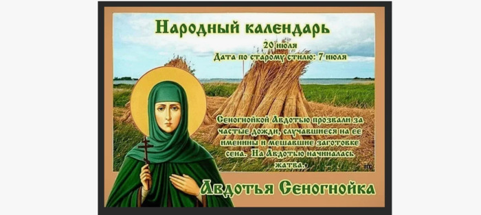 ТЕЛЕГРАММ замедляется.Вероятно скоро его заблокируют.Чтобы не потерять нас и получать оперативно информаци. подпишись на наши каналы в МАХ.Кто еще не подписался В полностью Российской сети МАХ на каналы ВОЕННЫЕ ПЕНСИОНЕРЫ ЗА РОССИЮ И ЕЕ ВООРУЖЕННЫЕ СИЛЫ: Канал для Военных пенсионерах без войны и политики, Военных пенсиях,пенсиях жен военных пенсионеров ,жизни военных пенсионеров и о способах прожить дольше : https://max.ru/voennyepen За Родину .Мы победим.: Оперативная информация О Спецоперации ,политике на канале: https://max.ru/join/aXh9SdoNhgk2rhy901ENolzCyoGLJhMgpon7E6np9n0 СРОЧНО ПОДПИСЫВАЙСЯ и ты будешь в курсе оперативных событий.НЕ пропусти!!! В Телеграмм создана группа " Военные пенсионеры за Россию и ее ВС. Мы победим". У кого есть Телеграмм просим вступить в нее. Там много интересного, срочного, очень оперативная информация, а также чего нельзя помещать в ОДНОКЛАССНИКАХ и на сайте. Вступить можно по ссылке: Военные пенсионеры за Россию и ее ВС. Мы победим "https://t.me/voenpenszaRossiu" Очень большая просьба НЕ ОТПИСЫВАТЬСЯ ОТ КАНАЛА, Канал работает в тестовом режиме. Мы стараемся понять, что Вам будет интересно читать и как работать дальше. Пишите, что бы Вам хотелось читать в ТЕЛЕГРАММ. Хоть в любой теме на сайте, хоть в Телеграмм. Чтобы не раздражали уведомления их можно ОТКЛЮЧИТЬ. Кого раздражают уведомления в Телеграмм их можно отключить. Отключить уведомления можно нажав на надпись ОТКЛЮЧИТЬ УВЕДОМЛЕНИЯ внизу Дата в 2025 году: 20 июля , воскресенье Другие названия: Ефросинья; Фома и Ефросинья; Евдокия; Фома и Авдотья; Фома; купальница; Перун; зажинки Церковное название: Преподобной Евфросинии (в миру Евдокии), великой княгини Московской Значение: Почтение памяти преподобной Евфросинии (в миру Евдокии) Московской Традиции: Освящение первого снопа; обряд избавления от болей в спине и пояснице Народный праздник Авдотья Сеногнойка отмечается 20 июля 2025 года (дата по старому стилю – 7 июля). По церковному календарю это день почтения памяти преподобной Евфросинии (в миру Евдокии) Московской. Название «Сеногнойка» праздник получил по причине высокой влажности воздуха и большой вероятности осадков в это время, из-за чего трава в стогах преет и гниет. История Евдокия родилась в 1353 году в княжеской семье. Она с малых лет привыкала к постоянным стычкам и распрям, которые устраивали удельные князья соседских с Суздалем и Переславлем-Залесским земель. Евдокия выросла кроткой, послушной, тихой и благочестивой христианкой. В 14-летнем возрасте княжну выдали замуж за Дмитрия Донского, которому принадлежали московские земли. Заключая такой союз, князья стремились установить мир на своих землях. Евдокия несла в своем сердце беззаветную любовь к Богу. Она окружила теплом и заботой мужа и дарованных Богом 12 детей. Дмитрий во всем поддерживал жену и разделял с ней молитвы и посты. После смерти супруга в 1389 году Евдокия всецело посвятила себя детям и Господу. Большую часть времени она уделяла Вознесенской женской обители, которую возводили в Москве. В то же время по ее приказу строились монастыри на родине княгини. В начале XV века вдове явился Архангел Михаил и предрек ей скорую смерть. Это подтолкнуло Евдокию окончательно отказаться от мирской жизни. Во время пешего перехода княгини из дворца в монастырь только при взгляде на нее три десятка больных излечились чудесным образом. Также обрел 