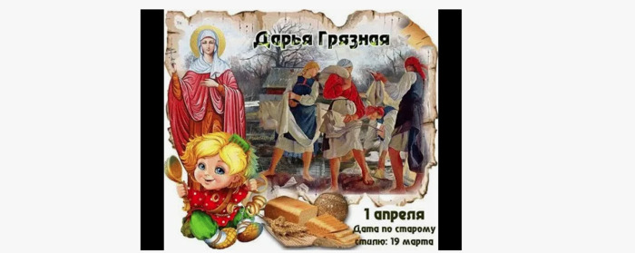 Дата в 2026 году: 1 апреля , среда Другие названия: День Дарьи Грязной и Хризанта; Дарья – грязные проруби; Дарья – грязные пролубницы; Дарья-поплавиха; Хрисанф и Дарья; Дарья маркая; Грязниха; Грязнопруд Церковное название: Мученика Хрисанфа, мученицы Дарии и с ними Значение: Почтение памяти святой Дарии и ее супруга Хрисанфа Традиции: Молитвы святой Дарии о благополучии и счастье в семье; угощение домового; устраивание розыгрышей Народный праздник Дарья Грязная отмечается 1 апреля 2026 года (по старому стилю – 19 марта). В церковном календаре это дата почтения памяти святой Дарии и ее мужа Хрисанфа. Люди прозвали день «грязным» потому, что тающий под лучами солнца снег превращался в чавкающее месиво. Содержание статьи История Дария жила в Риме в III веке. До замужества была язычницей, как и семья ее будущего супруга. Но сам Хрисанф уже несколько лет изучал Святое Писание. После тайного крещения он начал открыто проповедовать слово Божие. С целью вернуть сына на путь «правильной» веры отец женил его на красавице-язычнице. Дария оказалась не только красивой, но и умной девушкой. Она также приняла христианство. У Дарии в доме собирались женщины-христианки, у Хрисанфа – мужчины. Супруги-язычники этих людей пожаловались управителю Келерипу на них. За проповедование христианского безбрачия пару арестовали. Дарию отдали в блудный дом. Но появившийся из ниоткуда лев не подпустил никого, кто желал осквернить ее. А выгребная яма, в которую бросили Хрисанфа, очистилась и стала благоухать. Весть о происходящем дошла до императора Нумермана. Он приказал подвергнуть супругов пыткам и казнить. После долгих многочисленных истязаний мучеников живыми закопали в землю. Традиции и обряды На Дарью Грязную принято молиться святой о благополучии и счастье в браке. В народе верят, что 1 апреля пробуждается домовой. Помимо традиционного угощения в виде молока, каши и свежеиспеченного хлеба, его нужно еще порадовать чем-нибудь смешным. В противном случае он начнет проказничать. Девушкам рекомендуется в этот день устраивать как можно больше розыгрышей. Считается, чем лучше она с этим справится, тем меньше ее будет обманывать жених. Приметы и поверья Если на Дарью Грязную ясно и тепло, то лето будет сухим и ветреным. Если день дождливый, то можно не опасаться летней засухи. Если ночью звезд не видно, значит, последующие дни будут теплыми. Какая погода 1 апреля, такой она будет и через полгода. Вешние воды шумно бегут – будет много травы. Верба зацвела – пора доставать ульи. В этот день обычно тает снег, который все превращает в грязь. Но бояться ее стоит лишь людям с плохими мыслями. Согласно народному поверью, Дарья их обязательно «пометит» грязью. | |