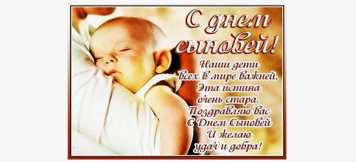 ТЕЛЕГРАММ замедляется.Вероятно скоро его заблокируют.Чтобы не потерять нас и получать оперативно информаци. подпишись на наши каналы в МАХ.Кто еще не подписался В полностью Российской сети МАХ на каналы ВОЕННЫЕ ПЕНСИОНЕРЫ ЗА РОССИЮ И ЕЕ ВООРУЖЕННЫЕ СИЛЫ: Канал для Военных пенсионерах без войны и политики, Военных пенсиях,пенсиях жен военных пенсионеров ,жизни военных пенсионеров и о способах прожить дольше : https://max.ru/voennyepen За Родину .Мы победим.: Оперативная информация О Спецоперации ,политике на канале: https://max.ru/join/aXh9SdoNhgk2rhy901ENolzCyoGLJhMgpon7E6np9n0 СРОЧНО ПОДПИСЫВАЙСЯ и ты будешь в курсе оперативных событий.НЕ пропусти!!! Спасибо всем неравнодушным .Деньги для сайта собрали .Для запасного сайта Военный пенсионер.рф необходимо еще 1700 руб дособрать. Но это не критично. Если кто хочет помочь,то мы будем очень благодарны. карта : 4006800071005382 Еще раз спасибо всем кто прислал и 1 руб и 3000 руб они помогли сайту выжить !!!! Дата в 2024 году: 22 ноября , пятница День сыновей – семейный праздник, который отмечают сыновья и их родители. В России в 2024 году День сыновей справляется 22 ноября. Праздник имеет неофициальный статус и не закреплен на официальном уровне. Цель праздника – укрепить семейные отношения, сплотить детей и родителей. Традиционно этот праздник проводится в семейном кругу. Матери и отцы дарят сыновьям подарки, произносят в их честь тосты и поздравления. История праздника Для России День сыновей – молодой праздник и только набирает популярность. Торжество распространилось на территории РФ благодаря СМИ, однако одной истории, объясняющей его возникновение нет. Традиции праздника День сыновей не имеет общепринятых традиций. В этот день в каждой семье существуют свои обычаи. Родители и дети собираются за праздничными столами, сыновья получают подарки и поздравления. Семьи с малышами посещают игровые комнаты, музеи, кинотеатры и детские представления. Сыновья, которые живут вдалеке от родителей, навещают их. Задание на день Устройте семейный праздник. Выступите в качестве инициатора семейного ужина. Поздравьте мужчин с Днем сыновей, подарите небольшие сувениры. Интересные факты Выражение «Мальчик для битья» пришло из Англии. В XV-XVIII при дворах существовали специфические методы воспитания. Наследных принцев воспитывали с мальчиками, которых наказывали за их непослушание. Принцам нельзя было дружить ни с кем, кроме мальчиков для битья, поэтому им было тяжело наблюдать за наказанием приятелей. В последние годы в США стало популярным называть детей в честь брендов. Мальчикам часто дают имена Найк или Лексус. В Китае из-за перенаселения в семьях разрешается иметь одного ребенка. Чаще будущие родители хотят мальчика – продолжателя рода. Матери, узнав, что у них будет девочка, прибегают к абортам. Это привело к тому, что в Китае не достает женщин. Их на 20 миллионов меньше, чем мужчин. Согласно данным ЗАГСов России составлен каталог самых необычных имен. Среди мальчиков это Яробог, Жиромир, Лучезар, Дарий, Блютуз. Ученые выяснили, что мальчикам, которые долго ползали, лучше дается учеба, чем детям, которые сразу научились ходить. В 24 месяца рост мальчика равен половине его роста во взрослом возрасте. Тосты «Поздравляем всех сыновей и всех родителей, которым судьба подарила мальчиков, с праздником. Нет в мире ничего лучше и чище любви родителей к детям