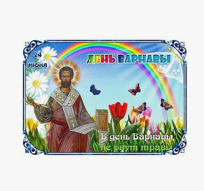 ТЕЛЕГРАММ замедляется.Вероятно скоро его заблокируют.Чтобы не потерять нас и получать оперативно информаци. подпишись на наши каналы в МАХ.Кто еще не подписался В полностью Российской сети МАХ на каналы ВОЕННЫЕ ПЕНСИОНЕРЫ ЗА РОССИЮ И ЕЕ ВООРУЖЕННЫЕ СИЛЫ: Канал для Военных пенсионерах без войны и политики, Военных пенсиях,пенсиях жен военных пенсионеров ,жизни военных пенсионеров и о способах прожить дольше : https://max.ru/voennyepen За Родину .Мы победим.: Оперативная информация О Спецоперации ,политике на канале: https://max.ru/join/aXh9SdoNhgk2rhy901ENolzCyoGLJhMgpon7E6np9n0 СРОЧНО ПОДПИСЫВАЙСЯ и ты будешь в курсе оперативных событий.НЕ пропусти!!! Дата в 2024 году: 24 июня , понедельник Другие названия: Варнава; Варнава-земляничник Церковное название: Апостолов Варфоломея (Нафанаила) и Варнавы (Иосифа) Значение: День памяти апостола от 70-ти Варнавы (Иосифа) Традиции: Ночные гуляния; запрещается рвать траву и косить сено Народный праздник День Варнавы отмечается 24 июня 2024 года (дата по старому стилю – 11 июня). Посвящается памяти апостола от 70-ти Варнавы (Иосифа), епископа Медиоланского. История Родина святого Варнавы – остров Кипр. Туда его предки переехали из Палестины во время войн. При рождении мальчика назвали Иосифом. Отец с матерью воспитывали в нем любовь к Господу с самых ранних лет. Когда он стал совершеннолетним, родители отдали его в ученики к известному раввину Гамалиилу в Иерусалиме. Вместе с Иосифом там же учил слово Божье Савл – будущий апостол Павел. Когда в Иерусалим пришел Иисус, Иосиф попросился следовать за ним. Так он стал одним из 70-ти учеников Господа и получил новое имя – Варнава, которое означает «сын утешения». Всю жизнь апостол проповедовал в разных городах и странах. В Медиолане (современный Милан) Варнава основал епископский престол. Когда вернулся на родину, то построил Кипрскую православную церковь. Он продолжал распространять учение Христа, пока восставшие против него иудеи не забили 76-летнего апостола камнями насмерть. Произошло это приблизительно в 61–62 годах. Традиции и обряды Начинаются русальные дни, в которые водяные духи становятся видимыми. Они веселятся и устраивают свадьбы. Хорошо, если русалка выбирает в мужья лешего. Если же она обращает внимание на живого человека, то заманивает его в глухое место, где щекочет до смерти. Во многих областях в эту ночь люди гуляют до рассвета. Они разводят костры, возле которых танцуют и поют. В День Варнавы запрещается рвать траву и косить сено. Таким образом можно в дом принести нечисть, которая в ней катается и делит между собой жребий и участки: кто отправится малым ребенком в колодце плакать и людей пугать, кто – ядом наполнять траву в полях, кто – хомуты и вожжи в сенцах спутывать. Причем она делает это не в обычное ночное время, а в полдень. Приметы и поверья Туман по воде стелется – к урожаю грибов. С рассвета душно и сильно пахнет жимолостью – к ненастью. Солнце на рассвете бледное – к вечернему дождю. Голуби прячутся – к непогоде. Услышать ночью пение эльфа – хороший знак, предвестник защиты от злых духов на целый год. Где русалка по полю пробежит, там трава гуще растет, колос сильнее наливается. На ветвях какого дерева она покачается, там плодов созревает больше. | |