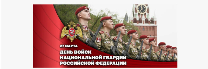 Дата в 2026 году: 27 марта , пятница Учрежден: Указом Президента РФ № 10 от 16.01.2017 г. Значение: приурочен к созданию внутренней стражи 27.03.1811 г. Традиции: вручение наград и грамот, внеочередные воинские звания, благодарности от командования День войск национальной гвардии Российской Федерации – профессиональный праздник военнослужащих, сотрудников полиции и гражданского персонала войск национальной гвардии Российской Федерации. В торжестве принимают участие служащие войск национальной гвардии, их родные и близкие друзья. К ним присоединяются преподаватели, учащиеся и выпускники профильных учебных заведений. Также этот праздник является памятным днем для семей бойцов, погибших при выполнении служебных обязанностей. День войск национальной гвардии Российской Федерации в 2026 году отмечается 27 марта и проходит на официальном уровне 10 раз. Значение: праздник приурочен к созданию внутренней стражи 27.03.1811 г. В этот день проводят торжественные мероприятия, на которых служащим вручают награды и грамоты, внеочередные воинские звания, благодарности от командования. История праздника День войск национальной гвардии Российской Федерации учредил Указ Президента РФ В. Путина № 10 от 16 января 2017 года. Он заменил День внутренних войск МВД России. Дата праздника приурочена к созданию внутренней стражи 27 марта 1811 года по Указу императора Александра I. Возложенные на нее правоохранительные задачи были близкими к задачам современных внутренних войск РФ. Традиции праздника В этот день директор Росгвардии официально поздравляет служащих. Командование вручает отличившимся сотрудникам награды, грамоты и ценные подарки, выносит благодарности, присваивает внеочередные воинские звания. Задание на день Посмотрите репортаж или документальный фильм о службе войск национальной гвардии Российской Федерации. Интересные факты Войска национальной гвардии РФ имеют эмблему и флаг. На эмблеме изображен увенчанный короной золотой двуглавый орел. В лапах он держит скрещенные мечи с серебряными клинками. На груди у орла – краповый щит, окованный серебром. На нем изображен всадник на коне, поражающий копьем дракона. Флаг представляет собой прямоугольное двустороннее белое полотнище. На нем расположены краповый четырехконечный крест с расширяющимися концами и эмблема войск. В 2002 году в Москве, возле Центрального музея внутренних войск, установлен памятник воинам внутренних войск. Он чтит память погибших при исполнении служебных обязанностей военнослужащих. Основными задачами войск национальной гвардии РФ является охрана общественного порядка, участие в борьбе с экстремизмом, терроризмом, территориальная оборона РФ. Прототипом войск нацгвардии была внутренняя стража Российской империи, которая занималась охраной порядка на ярмарках, поимкой и конвоированием преступников. Тосты «Поздравляю с праздником чести и уважения, с Днём войск национальной гвардии России. От души желаю громких успехов на службе, высоких стремлений в своём деле и непобедимого мужества в ваших сердцах. Пусть с такими героями, как вы, гвардия обеспечивает своему государству покой, благополучие и безопасность». «Вы, славные бойцы войск национальной гвардии России, стоите на защите мира и нашего покоя. Слава, честь, отвага и мужество для вас не пустой звук, а образ жизни. Поздр