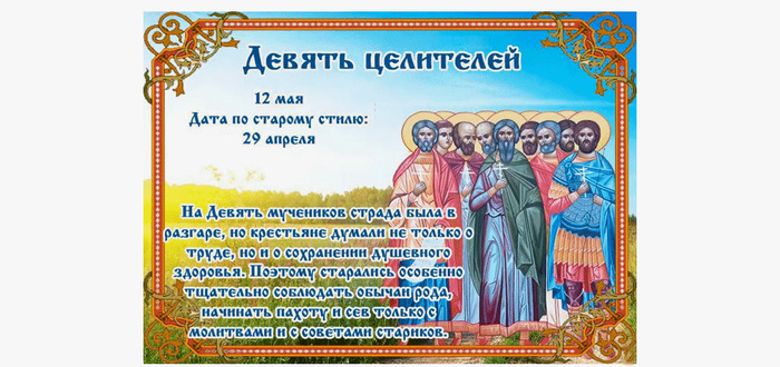 ТЕЛЕГРАММ замедляется.Вероятно скоро его заблокируют.Чтобы не потерять нас и получать оперативно информаци. подпишись на наши каналы в МАХ.Кто еще не подписался В полностью Российской сети МАХ на каналы ВОЕННЫЕ ПЕНСИОНЕРЫ ЗА РОССИЮ И ЕЕ ВООРУЖЕННЫЕ СИЛЫ: Канал для Военных пенсионерах без войны и политики, Военных пенсиях,пенсиях жен военных пенсионеров ,жизни военных пенсионеров и о способах прожить дольше : https://max.ru/voennyepen За Родину .Мы победим.: Оперативная информация О Спецоперации ,политике на канале: https://max.ru/join/aXh9SdoNhgk2rhy901ENolzCyoGLJhMgpon7E6np9n0 СРОЧНО ПОДПИСЫВАЙСЯ и ты будешь в курсе оперативных событий.НЕ пропусти!!! В Телеграмм создана группа " Военные пенсионеры за Россию и ее ВС. Мы победим". У кого есть Телеграмм просим вступить в нее. Там много интересного, срочного, очень оперативная информация, а также чего нельзя помещать в ОДНОКЛАССНИКАХ и на сайте. Вступить можно по ссылке: Военные пенсионеры за Россию и ее ВС. Мы победим "https://t.me/voenpenszaRossiu" Очень большая просьба НЕ ОТПИСЫВАТЬСЯ ОТ КАНАЛА, Канал работает в тестовом режиме. Мы стараемся понять, что Вам будет интересно читать и как работать дальше. Пишите, что бы Вам хотелось читать в ТЕЛЕГРАММ. Хоть в любой теме на сайте, хоть в Телеграмм. Чтобы не раздражали уведомления их можно ОТКЛЮЧИТЬ. Кого раздражают уведомления в Телеграмм их можно отключить. Отключить уведомления можно нажав на надпись ОТКЛЮЧИТЬ УВЕДОМЛЕНИЯ внизу Дата в 2025 году: 12 мая , понедельник Другие названия: Мемнон; девять мучеников Кизических; День девяти святых мучеников Церковное название: Девяти мучеников Кизических Значение: День памяти девяти святых мучеников Кизических: Феогнида, Руфа, Антипатра, Феостиха, Артемы, Магна, Феодота, Фавмасия и Филимона Традиции: Молитвы святым об исцелении от болезней; заговор от девяти бед; приготовление целебных настоев из травяных растений Народный праздник Девять целителей отмечается 12 мая 2025 года (по старому стилю – 29 апреля). В церковном календаре это дата почтения памяти девяти святых мучеников Кизических: Феогнида, Руфа, Антипатра, Феостиха, Артемы, Магна, Феодота, Фавмасия и Филимона. История К концу III столетия в городе Кизик, что в Малой Азии, преобладала власть язычников. Христиане покидали город или проводили службы и встречи тайно. Однажды девять истинных христиан разного возраста и сословия сошлись в Кизике и открыто выступили против язычников. Они стали проповедовать веру во Христа. По решению властителя города их арестовали и предали мукам. Но они не отвергли Иисуса, не принесли жертвы идолам и не предали свою веру. За это их обезглавили и похоронили за пределами города. В начале IV века, когда гонения на православных христиан прекратились, в честь святых мучеников построили храм и перенесли туда их останки. У святых мощей произошло не одно чудо: больные выздоравливали, помешанные обретали разум. В России, в Казани, есть действующий православный Кизический мужской монастырь, который построили в 1691 году в память о девяти святых мучениках. Традиции и обряды В этот день молятся девяти мученикам Кизическим об исцелении от физических заболеваний, избавлении от эпидемий. Произносят специальный заговор от девяти бед. Люди верят, что он способен защитить и излечить человека от разных болезней. В этот праздник собирают травы и готовят настои из целебных растений. Одна 