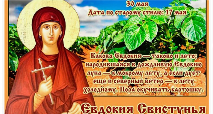 ТЕЛЕГРАММ замедляется.Вероятно скоро его заблокируют.Чтобы не потерять нас и получать оперативно информаци. подпишись на наши каналы в МАХ.Кто еще не подписался В полностью Российской сети МАХ на каналы ВОЕННЫЕ ПЕНСИОНЕРЫ ЗА РОССИЮ И ЕЕ ВООРУЖЕННЫЕ СИЛЫ: Канал для Военных пенсионерах без войны и политики, Военных пенсиях,пенсиях жен военных пенсионеров ,жизни военных пенсионеров и о способах прожить дольше : https://max.ru/voennyepen За Родину .Мы победим.: Оперативная информация О Спецоперации ,политике на канале: https://max.ru/join/aXh9SdoNhgk2rhy901ENolzCyoGLJhMgpon7E6np9n0 СРОЧНО ПОДПИСЫВАЙСЯ и ты будешь в курсе оперативных событий.НЕ пропусти!!! В Телеграмм создана группа " Военные пенсионеры за Россию и ее ВС. Мы победим". У кого есть Телеграмм просим вступить в нее. Там много интересного, срочного, очень оперативная информация, а также чего нельзя помещать в ОДНОКЛАССНИКАХ и на сайте. Вступить можно по ссылке: Военные пенсионеры за Россию и ее ВС. Мы победим "https://t.me/voenpenszaRossiu" Очень большая просьба НЕ ОТПИСЫВАТЬСЯ ОТ КАНАЛА, Канал работает в тестовом режиме. Мы стараемся понять, что Вам будет интересно читать и как работать дальше. Пишите, что бы Вам хотелось читать в ТЕЛЕГРАММ. Хоть в любой теме на сайте, хоть в Телеграмм. Чтобы не раздражали уведомления их можно ОТКЛЮЧИТЬ. Кого раздражают уведомления в Телеграмм их можно отключить. Отключить уведомления можно нажав на надпись ОТКЛЮЧИТЬ УВЕДОМЛЕНИЯ внизу Дата в 2025 году: 30 мая , пятница Другие названия: День Евдокии-Свистуньи; Евдокия; Евфросинья; Ефросиния; свистуха; Адриан; Ондрон с дождем Церковное название: Преподобной Евфросинии (в инокинях Евдокии), великой княгини Московской Значение: День памяти святой Евфросинии Московской Традиции: Предсказание погоды на лето; обряды для призыва дождя Народный праздник Евдокия Свистунья отмечается 30 мая 2025 года (дата по старому стилю – 17 мая). По церковному календарю в этот день почитается преподобная Евфросиния Московская. Название «Свистунья» праздник получил из-за ветров, которые свистят в этот период. История Преподобная Евфросиния родилась в 1353 году в княжеской семье. Ее отец, князь Суздальский Димитрий, и мать, княгиня Анна, воспитали дочь в послушании и любви к Богу. Когда девочке исполнилось 14 лет, они обвенчали ее с князем Московским Димитрием Донским. Молодые поженились по любви. Их союз привел к миру двух княжеств. Главной опорой и поддержкой Евфросинии была любовь к Господу. Муж разделял с супругой милосердие, посты и молитвы. С 1389 года, после смерти благоверного князя Димитрия от неизлечимой болезни, и по 1407 год Евфросиния воспитывала детей, возводила храмы и монастыри. Когда в последний год ее жизни ей привиделся архангел Михаил и оповестил о скорой кончине, она решила оставить престол и стать монахиней. Приняла постриг с именем Евфросиния, прожила еще несколько месяцев и мирно отошла к Господу. Чудесные деяния начались во время шествия святой к своей последней обители – Вознесенскому монастырю. 30 человек, которые прикоснулись к ее одеждам, исцелились от разных болезней. Традиции и обряды В этот день следят за погодой. По ней предсказывают, каким будет летний сезон. Призывают небесного сторожа Ондрона, он же Адриан, в помощь посевам. Легенда гласит, что этот святой хранит у себя ключи от небесных врат, которые удерживают дождевые тучи. При засухе люди прося