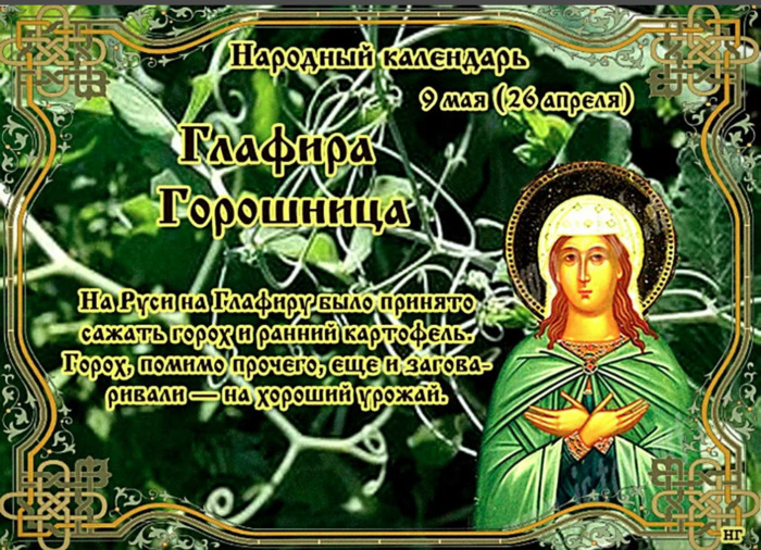 ТЕЛЕГРАММ замедляется.Вероятно скоро его заблокируют.Чтобы не потерять нас и получать оперативно информаци. подпишись на наши каналы в МАХ.Кто еще не подписался В полностью Российской сети МАХ на каналы ВОЕННЫЕ ПЕНСИОНЕРЫ ЗА РОССИЮ И ЕЕ ВООРУЖЕННЫЕ СИЛЫ: Канал для Военных пенсионерах без войны и политики, Военных пенсиях,пенсиях жен военных пенсионеров ,жизни военных пенсионеров и о способах прожить дольше : https://max.ru/voennyepen За Родину .Мы победим.: Оперативная информация О Спецоперации ,политике на канале: https://max.ru/join/aXh9SdoNhgk2rhy901ENolzCyoGLJhMgpon7E6np9n0 СРОЧНО ПОДПИСЫВАЙСЯ и ты будешь в курсе оперативных событий.НЕ пропусти!!! Дата в 2022 году: 9 мая , понедельник Другие названия: Глафиров день; День Глафиры-горошницы Церковное название: Праведной Глафиры девы Значение: День памяти праведной Глафиры Амасийской, девы Традиции: Посадка гороха и картофеля; приготовление блюд из гороха Народный праздник Глафира Горошница отмечается 9 мая 2022 года (по старому стилю – 26 апреля). Православная церковь в эту дату чтит память праведной Глафиры Амасийской, девы. Название «Горошница» праздник получил потому, что 9 мая – идеальный день для посадки гороха. История Благочестивая девушка Глафира жила в IV веке. Она была служанкой царицы Констанции – жены Ликиния, правителя Восточной Римской империи. Император подписал в 313 году указ о терпимости к других религиям, в частности к православной. Но в душе был с ним не согласен и продолжал преследовать христиан. О том, что Глафира христианка, он не знал. Ликиний воспылал греховной страстью к девушке и добивался ее любви. Глафира рассказала об этом своей госпоже и попросила защиты. Ее переодели в мужское платье, царица дала ей денег и отправила в Армению. Супругу Констанция сказала, что служанка сошла с ума, ей очень плохо, и она вскоре может умереть. По пути Глафира встретила святителя Василия, который строил храм в городе Амасии. Девушка решила остаться у него. Она отдала ему деньги, которые получила от царицы. Глафира написала письмо своей госпоже с просьбой помочь епископу с постройкой храма. Но оно попало в руки Ликиния. Разгневанный правитель отправил гонца к главе города с приказом немедленно доставить ему и девицу, и святителя. Но праведная дева умерла раньше, чем письмо доставили в Амасию. Случилось это в 322 году. Традиции и обряды 9 мая садят горох и ранний картофель. Перед посадкой растения из семейства бобовых читают заговоры на богатый урожай. Готовят блюда из гороха – кашу или суп с мясом. В этот день ожидают прилета ласточек. К этим птицам у людей особое отношение. Ласточка считается чистой, светлой, любимой Богом птицей. Ее гнездо служит оберегом для дома от пожара. Птичку и ее гнездо используют в любовных обрядах. Разорять ее домик считается большим грехом. Приметы Обильная роса и ясный день обещают богатый урожай огурцов. Снег 9 мая сулит богатый урожай гречки. Резкое похолодание в этот день означает, что через неделю мороз вернется. Если это произошло – осенью весь сезон будет тепло. Если кукушкино кукование больше напоминает лягушачье кваканье, значит, в скором времени пойдет дождь. Если же оно громкое и четкое, то погода будет ясной и теплой. Если ласточка свила гнездо у дома, в котором живет девушка на выданье, то она скоро пойдет под венец. | |