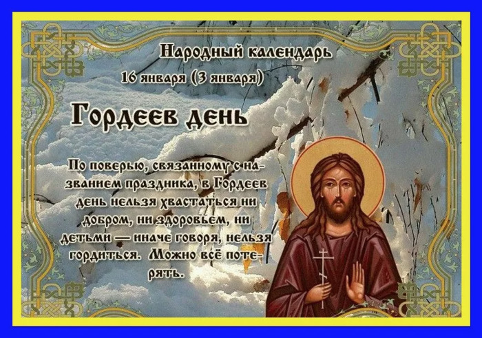 ТЕЛЕГРАММ замедляется.Вероятно скоро его заблокируют.Чтобы не потерять нас и получать оперативно информаци. подпишись на наши каналы в МАХ.Кто еще не подписался В полностью Российской сети МАХ на каналы ВОЕННЫЕ ПЕНСИОНЕРЫ ЗА РОССИЮ И ЕЕ ВООРУЖЕННЫЕ СИЛЫ: Канал для Военных пенсионерах без войны и политики, Военных пенсиях,пенсиях жен военных пенсионеров ,жизни военных пенсионеров и о способах прожить дольше : https://max.ru/voennyepen За Родину .Мы победим.: Оперативная информация О Спецоперации ,политике на канале: https://max.ru/join/aXh9SdoNhgk2rhy901ENolzCyoGLJhMgpon7E6np9n0 СРОЧНО ПОДПИСЫВАЙСЯ и ты будешь в курсе оперативных событий.НЕ пропусти!!! Дата в 2021 году: 16 января, суббота Другие названия: Гордей и Малахия Церковное название: Святого мученика Гордия; Святого пророка Малахии Значение: День памяти святых Гордия и Малахии Традиции: Обряд защиты коров от ведьм Народный праздник Гордеев день в 2021 году отмечается 16 января (по старому стилю – 3 января). В православном церковном календаре это дата почтения памяти мученика Гордия Каппадокийского. Содержание статьи История жизни святого Гордия Гордий родился в конце III века в Кесарии Каппадокийской в семье христиан. В зрелом возрасте прошел военную службу. За успехи и мужество получил звание сотника. Когда начались гонения на христиан, оставил службу и предался Господу Богу. Он поселился в пустыне, где начал готовить себя к исповеданию имени Христова. В 320 году Гордий вернулся в Кесарию Каппадокийскую, где встал на защиту христиан. Там его схватили язычники. Сначала подвергли мучительным пыткам, а затем обезглавили по приказу правителя города. Традиции и обряды праздника В Гордеев день на Руси было принято оберегать коров от ведьм. Крестьяне верили, что в этот день после своих гуляний они похищали коровье молоко. Это могло привести к гибели животных. Чтобы спасти домашнюю скотину, проводили такой обряд: над воротами подвешивали свечу из сала и просили домового охранять животных. Традиционным блюдом на столе была овсяная каша с молоком. Ею также кормили коров. Знахари в этот день снимали порчу с людей и исцеляли тех, кто страдал припадками. Приметы и поверья Погода в Гордеев день показывает погоду в марте. Ночью ярко светят звезды – погода будет ясной. Деревья покрыты инеем – ближайшие дни будут ясными. Зайцы начали подбегать к домам – к морозам. В этот день нельзя хвастаться, иначе человек утратит то, чем выхваляется. | |