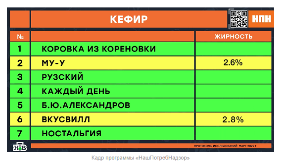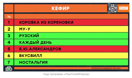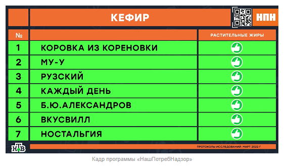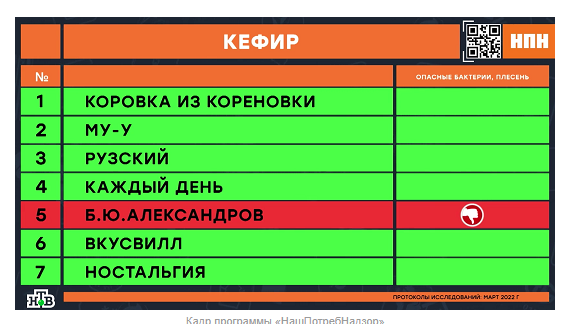 ТЕЛЕГРАММ замедляется.Вероятно скоро его заблокируют.Чтобы не потерять нас и получать оперативно информаци. подпишись на наши каналы в МАХ.Кто еще не подписался В полностью Российской сети МАХ на каналы ВОЕННЫЕ ПЕНСИОНЕРЫ ЗА РОССИЮ И ЕЕ ВООРУЖЕННЫЕ СИЛЫ: Канал для Военных пенсионерах без войны и политики, Военных пенсиях,пенсиях жен военных пенсионеров ,жизни военных пенсионеров и о способах прожить дольше : https://max.ru/voennyepen За Родину .Мы победим.: Оперативная информация О Спецоперации ,политике на канале: https://max.ru/join/aXh9SdoNhgk2rhy901ENolzCyoGLJhMgpon7E6np9n0 СРОЧНО ПОДПИСЫВАЙСЯ и ты будешь в курсе оперативных событий.НЕ пропусти!!! Плесень и антибиотики в кефире «Коровка из Кореновки» и «Б.Ю. Александров», а в «Му-Му» и «ВкусВилл» – меньше жира Кефир давно зарекомендовал себя среди потребителей, как диетический продукт и диетологи твердят, что если его употреблять на ночь, то будет вам польза и уйдут пару лишних килограмм. Но так ли это на самом деле? Многие потребители, покупая кефир в магазине даже не задумаются, а так ли он полезен на самом деле, как об этом все говорят? Некоторые уверяют, что раньше в этом продукте было гораздо больше полезных микроэлементов для человека, а сейчас – сплошь и рядом химия и ничего полезного в кефире не осталось. Экспертиза поможет разобраться, как обстоят дела на самом деле. Авторы программы «НашПотребНадзор» на телеканале НТВ совместно с экспертами московского Центра гигиены и эпидемиологии решили проверить кефир, для того, чтобы выяснить, продукцию каких из выбранных брендов стоит убрать из продажи в магазинах за низкое качество, микробы и антибиотики в составе, а какую – можно без опаски покупать. Для проведения экспертизы в обычных супермаркетах были куплены семь образцов кефира от известных брендов – «Коровка из Кореновки», «Му-Му», «Рузский», «Каждый день», «Б.Ю. Александров», «ВкусВилл» и «Ностальгия». Что говорит ГОСТ? Согласно ГОСТу, кефир должен быть изготовлен всего из четырёх ингредиентов: молока, сливок, воды и особых кефирных грибков. На этом список разрешённых составляющих кефира заканчивается. Любые другие добавки являются самым очевидным сигналом для того, чтобы потребитель мог понять, что напиток – фальшивка. Но многие производители, даже в виду такого требования ГОСТа, всё равно идут на хитрость, удешевляя состав продукции с помощью добавления пальмового жира (и это при условии, что он подорожал этой весной). В первую очередь в лаборатории состав всех экземпляров кефира проверили на наличие растительных жиров, удешевляющих состав. Результаты проверки показали, что растительных удешевителей ни в одном из образцов кефира не оказалось. «Да, действительно, все семь образцов кефира являются именно кефиром, молочным продуктом, а не молокосодержащим», – делится Алёна Коротова, эксперт Центра гигиены и эпидемиологии Москвы. На следующем этапе проверки эксперты решили выяснить, а какое именно молоко пошло на кефир: дорогое с хорошей жирностью или дешёвое и жидкое? Результаты проверки всех образцов на жирность показали, что производители кефира «Му-Му» (2,6% жирности) и «ВкусВилл» (2,8% жирности) явно использовали для изволения кефира молоко с невысокой жирностью (или водой его разбавили – как предположили эксперты). Жирность кефира у этих двух брендов не соответствует заявленной на упаковке жирно