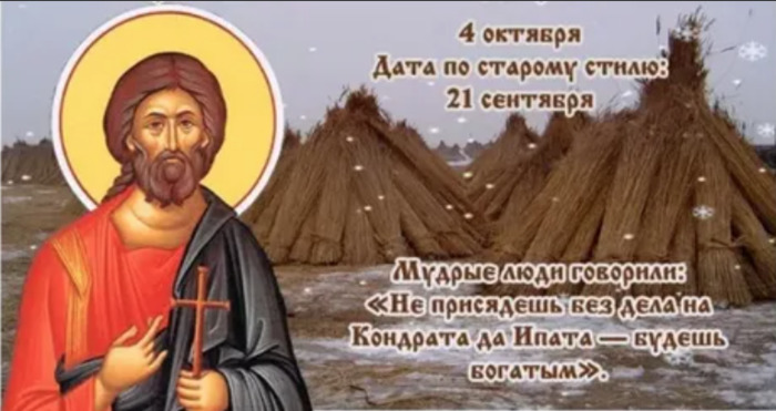 ТЕЛЕГРАММ замедляется.Вероятно скоро его заблокируют.Чтобы не потерять нас и получать оперативно информаци. подпишись на наши каналы в МАХ.Кто еще не подписался В полностью Российской сети МАХ на каналы ВОЕННЫЕ ПЕНСИОНЕРЫ ЗА РОССИЮ И ЕЕ ВООРУЖЕННЫЕ СИЛЫ: Канал для Военных пенсионерах без войны и политики, Военных пенсиях,пенсиях жен военных пенсионеров ,жизни военных пенсионеров и о способах прожить дольше : https://max.ru/voennyepen За Родину .Мы победим.: Оперативная информация О Спецоперации ,политике на канале: https://max.ru/join/aXh9SdoNhgk2rhy901ENolzCyoGLJhMgpon7E6np9n0 СРОЧНО ПОДПИСЫВАЙСЯ и ты будешь в курсе оперативных событий.НЕ пропусти!!! Дата в 2022 году: 4 октября , вторник Другие названия: Игнат и Кондрат; Кондратьев день; Игнат; замолотки; дворы; день плодородия и земледелия; Димитрий Церковное название: Апостола от 70-ти Кодрата; Священномучеников Ипатия епископа и Андрея пресвитера; Обретение мощей святителя Димитрия Ростовского, митрополита Значение: Почтение памяти святых Кодрата и Ипатия Традиции: Проводят день в работе; замолотки зерна Народный праздник Кондрат да Ипат отмечается 4 октября 2022 года (дата по старому стилю – 21 сентября). Православная церковь в этот день чтит память апостола от 70-ти Кодрата Афинского, епископа и святого мученика Ипатия, епископа Ефисского. Святой Кодрат был одним из семидесяти апостолов, которые несли слово Божие людям. Многих он наставил на путь истинной веры. Однажды толпа язычников набросилась на епископа и сильно избила. Чудом выжившего Кодрата бросили в заточение, где он и погиб от голода. В 126 году апостол написал апологию (защитительную речь для суда), которую представил императору Адриану. Под впечатлением речи правитель издал указ, запрещающий судить человека без улик. Святой Ипат стал на защиту уничтожаемых икон. Он даже отстоял перед императором Львом Исаврянином православное иконопочитание. Разгневанный правитель приказал предать святого разным жестоким пыткам и мукам, после чего предать смерти. Традиции и обряды В народе говорят, что лениться в этот день нельзя. Кто его проведет в работе, будет вознагражден если и не богатством, то хотя бы благополучием. Лучше всего этот день подходит для удобрения земли. В полночь начинаются замолотки зерна. Для этого с вечера разводится огонь в ямах земельного пола первого этажа в овинах (строение для молотьбы) и раскладываются снопы на решетках на высоте второго этажа. Жар от костра высушивает шелуху, и зерна легче отделяются при молотьбе. С утра работников принято кормить овсяной кашей, а вечером – пирогами и домашним пивом или чем покрепче. Первый овин называется именинным. Приметы Если день ясный и теплый, но с порывами северного ветра, значит, зима будет морозной. Если на Кондрата да Ипата резко похолодало, зима наступит рано. Какая погода весь день стоит, такой и на месяц вперед будет. Если днем прохладно, а к ночи теплеет – к скорому ненастью. | |