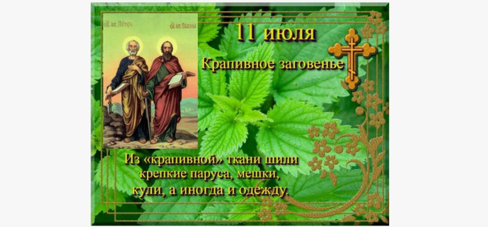 ТЕЛЕГРАММ замедляется.Вероятно скоро его заблокируют.Чтобы не потерять нас и получать оперативно информаци. подпишись на наши каналы в МАХ.Кто еще не подписался В полностью Российской сети МАХ на каналы ВОЕННЫЕ ПЕНСИОНЕРЫ ЗА РОССИЮ И ЕЕ ВООРУЖЕННЫЕ СИЛЫ: Канал для Военных пенсионерах без войны и политики, Военных пенсиях,пенсиях жен военных пенсионеров ,жизни военных пенсионеров и о способах прожить дольше : https://max.ru/voennyepen За Родину .Мы победим.: Оперативная информация О Спецоперации ,политике на канале: https://max.ru/join/aXh9SdoNhgk2rhy901ENolzCyoGLJhMgpon7E6np9n0 СРОЧНО ПОДПИСЫВАЙСЯ и ты будешь в курсе оперативных событий.НЕ пропусти!!! В Телеграмм создана группа " Военные пенсионеры за Россию и ее ВС. Мы победим". У кого есть Телеграмм просим вступить в нее. Там много интересного, срочного, очень оперативная информация, а также чего нельзя помещать в ОДНОКЛАССНИКАХ и на сайте. Вступить можно по ссылке: Военные пенсионеры за Россию и ее ВС. Мы победим "https://t.me/voenpenszaRossiu" Очень большая просьба НЕ ОТПИСЫВАТЬСЯ ОТ КАНАЛА, Канал работает в тестовом режиме. Мы стараемся понять, что Вам будет интересно читать и как работать дальше. Пишите, что бы Вам хотелось читать в ТЕЛЕГРАММ. Хоть в любой теме на сайте, хоть в Телеграмм. Чтобы не раздражали уведомления их можно ОТКЛЮЧИТЬ. Кого раздражают уведомления в Телеграмм их можно отключить. Отключить уведомления можно нажав на надпись ОТКЛЮЧИТЬ УВЕДОМЛЕНИЯ внизу Дата в 2025 году: 11 июля , пятница Другие названия: Крапивные заговины; конец Петрова поста; канун Петрова дня Традиции: Приготовление блюд и отваров из крапивы; народные гуляния; копание картофеля Народный праздник Крапивное заговенье отмечается 11 июля 2025 года (дата по старому стилю – 28 июня). «Крапивным» его назвали за то, что согласно народному поверью, после 11 июля крапива теряет целебные свойства, которыми напитывается с момента прорастания. История Праздник уходит корнями в древнее дохристианское время. Тогда предки восточных славян поклонялись разным богам и верили, что животные, растения, вода, камни обладают чудодейственной силой. В истории встречается много упоминаний о крапиве как лекарственном и магическом растении. Она и от голода избавляет, и здоровье прибавляет, и девушкам красоту дарит, и нечистого отваживает. Традиции и обряды В праздник крапивного заговенья люди варят щи из крапивы, делают из нее салаты и начинку для пирожков. Готовят целебные отвары и настои. Отвар из листьев крапивы укрепляет волосы, делает их блестящими и избавляет от перхоти. Люди начинают копать картофель. Молодежь водит хороводы, поет песни. Народные гуляния проходят до самого утра. Приметы и поверья Если в этот день не слышно кукушки, то зима будет ранней и снежной. Кому посчастливится найти в этот день цветущий чешуйник (он же царь-трава, потаенница или петров крест) и вырвать с корнем, тому растение будет служить охранным амулетом от людского зла и происков нечистой силы. Еще чешуйник может указать, где спрятан клад, и помочь достать сокровища. Кто начнет косьбу раньше Петрова дня, того Бог покарает так, что ни один лекарь или целитель не сможет его излечить. Крапива – хорошее средство для защиты от дурного глаза и проделок нечистой силы. Чтобы оградить жилье, нужно развесить растение над окнами и входом, положить на поддонники, чердак, порог. Чтобы очистить дом от порчи и
