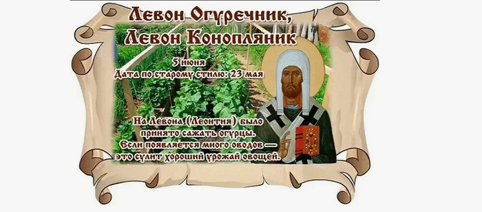 ТЕЛЕГРАММ замедляется.Вероятно скоро его заблокируют.Чтобы не потерять нас и получать оперативно информаци. подпишись на наши каналы в МАХ.Кто еще не подписался В полностью Российской сети МАХ на каналы ВОЕННЫЕ ПЕНСИОНЕРЫ ЗА РОССИЮ И ЕЕ ВООРУЖЕННЫЕ СИЛЫ: Канал для Военных пенсионерах без войны и политики, Военных пенсиях,пенсиях жен военных пенсионеров ,жизни военных пенсионеров и о способах прожить дольше : https://max.ru/voennyepen За Родину .Мы победим.: Оперативная информация О Спецоперации ,политике на канале: https://max.ru/join/aXh9SdoNhgk2rhy901ENolzCyoGLJhMgpon7E6np9n0 СРОЧНО ПОДПИСЫВАЙСЯ и ты будешь в курсе оперативных событий.НЕ пропусти!!! В Телеграмм создана группа " Военные пенсионеры за Россию и ее ВС. Мы победим". У кого есть Телеграмм просим вступить в нее. Там много интересного, срочного, очень оперативная информация, а также чего нельзя помещать в ОДНОКЛАССНИКАХ и на сайте. Вступить можно по ссылке: Военные пенсионеры за Россию и ее ВС. Мы победим "https://t.me/voenpenszaRossiu" Очень большая просьба НЕ ОТПИСЫВАТЬСЯ ОТ КАНАЛА, Канал работает в тестовом режиме. Мы стараемся понять, что Вам будет интересно читать и как работать дальше. Пишите, что бы Вам хотелось читать в ТЕЛЕГРАММ. Хоть в любой теме на сайте, хоть в Телеграмм. Чтобы не раздражали уведомления их можно ОТКЛЮЧИТЬ. Кого раздражают уведомления в Телеграмм их можно отключить. Отключить уведомления можно нажав на надпись ОТКЛЮЧИТЬ УВЕДОМЛЕНИЯ внизу Дата в 2025 году: 5 июня , четверг Другие названия: Леон-конопляник; Леон-огуречник; Леонтий; День святого Леонтия Огуречника; Леонтий Конопляник; огуречник; конопляник Церковное название: Обретение мощей святителя Леонтия, епископа Ростовского Значение: Обретение святых останков святителя Леонтия, епископа Ростовского Традиции: Посадка огурцов; посев конопли Народный праздник Левон Огуречник (Левон Конопляник) отмечается 5 июня 2025 года (дата по старому стилю – 23 мая). Православная церковь этого числа празднует обретение мощей святителя Леонтия, епископа Ростовского. Народ прозвал этот день «огуречником» и «конопляником» потому, что он считается наиболее подходящим для посадки этих культур. История 23 мая 1164 года (по старому стилю) при копании рвов в церкви Пресвятой Богородицы в Ростове были обнаружены святые останки епископа Ростовского Леонтия. История не сохранила дату рождения святого, но известно, что произошло это не позже 1051 года. Под вопросом остается и страна, в которой он родился. По одним данным, это Греция, по другим – Русь. Святой Леонтий принял постриг в Печерской обители, обучался под духовным началом преподобных Антония и Феодосия. В первой половине XI столетия его рукоположили в сан епископа. Он покинул храм в Киевских пещерах и возглавил Ростовскую кафедру. Вскоре после смерти святого стали почитать настолько, что в память о нем переименовали Ростовскую кафедру в кафедру святого Леонтия чудотворца. Причина и время его смерти также неизвестны, как и дата рождения. В одних источниках указано, что святого Леонтия убили в 1073 году идолопоклонники, которые не смирились с его приходом в Ростов и с тем, как многие покаялись и приняли христианство. В других, не менее уважаемых источниках, говорится о мирной кончине святителя не позднее 1077 года. Тело Леонтия находилось в одной из ростовских церквей вплоть до 1160 года. После произошел пожар, при котором св