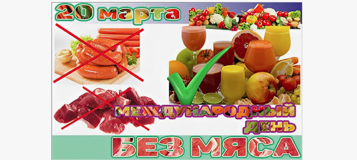 Дата в 2026 году: 20 марта , пятница Празднуется: в России, Украине, Беларуси и других странах мира Другие названия: в 1985 году Традиции: магазины и рестораны не продают мясо; активисты общественных фондов, защитники природы распространяют идеи вегетарианства, гуманного отношения к животным, защиты экологии; люди делятся опытом вегетарианских практик, рецептами блюд без мяса Мясо – незаменимый продукт для многих людей. Чрезмерное употребление животноводческих блюд способно негативно повлиять на здоровье человека. Для обращения внимания социума на идеи отказа от мясных изделий, увеличения уровня знаний о вегетарианстве, борьбы против негуманного содержания животных учрежден международный праздник. Когда проходит Международный день без мяса отмечается ежегодно 20 марта. В 2026 году дату справляют в России, Украине, Беларуси и других странах. Кто отмечает В международном празднике участвуют активисты общественных движений, благотворительных организаций, исследователи питания, врачи, люди, которые увлекаются вегетарианством и здоровым образом жизни. К ним присоединяются их друзья, родственники, знакомые, близкие люди. История и традиции праздника Событие впервые отметили в 1985 году. В этот день торговые учреждения, заведения питания не отпускают мясо. Участники общественных фондов, благотворительных учреждений, защитники животных проводят флешмобы и акции. Они распространяют идеи вегетарианства, гуманного отношения к животным, защиты экологии. Организуются конференции, лекции, семинары, тренинги. Выдвигаются идеи по совершенствованию природоохранного законодательства. Звучат доклады об актуальных проблемах питания людей и методах их ликвидации. Люди обмениваются опытом вегетарианских практик. Мастера кулинарии делятся рецептами гастрономических блюд. Распространяются идеи отказа от мясных продуктов. Обсуждаются исследования, книги, которые посвящены пище. Устраиваются мероприятия в кругу диетологов. В ряде стран праздник приобрел государственную поддержку. В России праздник впервые отметили в 2012 году. В Санкт-Петербурге активисты вручали прохожим фрукты и листовки о пользе растительного питания. Интересные факты Исследователи утверждают, что человечество ежегодно убивает 60 миллиардов животных без учета обитателей воды. Животноводство выделяет в атмосферу на 20% больше «парниковых газов», чем транспорт. Мясо содержит необходимые человеческому организму аминокислоты. Его пытаются выращивать в пробирке с химическим составом, близким к натуральным. Ряд правительств финансирует исследовательскую программу по изготовлению синтетического продукта. Его пока не используют в коммерческих целях. Высшие приматы употребляют в пищу преимущественно растительную еду. | |
