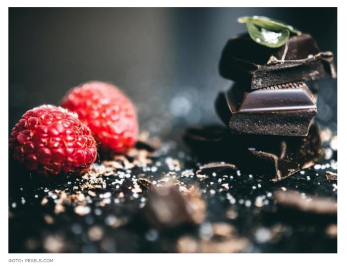 Шоколад не только любимое лакомство многих людей и вкусная сладость, но и источник необходимых организму элементов. Наиболее полезным считается темный шоколад, поскольку в нем меньше добавленного сахара и жира. О его пользе рассказали специалисты Кливлендской клиники (Cleveland Clinic). Почему стоит включить в рацион этот продукт ФОТО: PEXELS.COM Польза для сердца Темный шоколад богат флаванолами – это тип флавоноидов которые содержатся в какао. Эти пищевые антиоксиданты оказывают положительное влияние на здоровье сердца – они способствуют расслаблению кровеносных сосудов, улучшению кровотока и снижают кровяное давление. Источник важных элементов Темный шоколад содержит в своем составе большое количество железа, магния, цинка, меди и фосфора, что позволяет поддерживать иммунитет, здоровье зубов, костей, а также улучшать качество сна. Улучшает состояние кожи Антиоксиданты, которые присутствуют в темном шоколаде, улучшают приток крови к коже и защищают ее от негативного воздействия ультрафиолетовых лучей. Из-за своих антиоксидантных свойств флаванолы также эффективны в борьбе с повреждением клеток, которое непосредственно влияет на процесс старения. Поднимает настроение Темный шоколад ассоциируется с чувством удовольствия и наслаждения. Эти позитивные эмоции могут исходить от так называемых полифенольных соединений – антиоксидантов, которые снижают уровень кортизола (гормон стресса). Выяснилось, что шоколад может поднимать настроение. Снижает риск диабета Было обнаружено, что богатый флаванолами шоколад может повышать чувствительность к инсулину, снижает вероятность развития диабета. Авторы: АРТЕМ КОШЕЛЕНКО | |