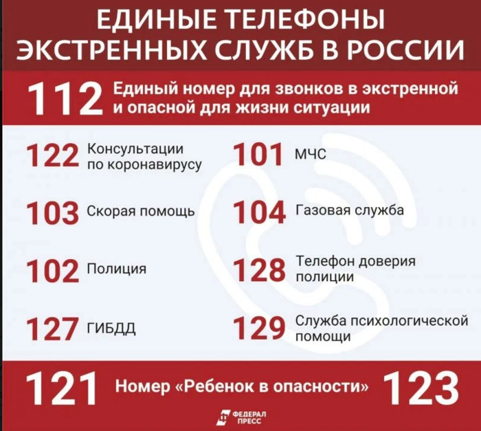 ТЕЛЕГРАММ замедляется.Вероятно скоро его заблокируют.Чтобы не потерять нас и получать оперативно информаци. подпишись на наши каналы в МАХ.Кто еще не подписался В полностью Российской сети МАХ на каналы ВОЕННЫЕ ПЕНСИОНЕРЫ ЗА РОССИЮ И ЕЕ ВООРУЖЕННЫЕ СИЛЫ: Канал для Военных пенсионерах без войны и политики, Военных пенсиях,пенсиях жен военных пенсионеров ,жизни военных пенсионеров и о способах прожить дольше : https://max.ru/voennyepen За Родину .Мы победим.: Оперативная информация О Спецоперации ,политике на канале: https://max.ru/join/aXh9SdoNhgk2rhy901ENolzCyoGLJhMgpon7E6np9n0 СРОЧНО ПОДПИСЫВАЙСЯ и ты будешь в курсе оперативных событий.НЕ пропусти!!! 112 – единый номер для звонков в экстренной и опасной для жизни ситуации. Звонок бесплатен для абонентов без средств на счету и даже без SIM-карты. 103 – номер скорой помощи. Вызов принимает оператор с медицинским образованием. 102 – полиция 127 – ГИБДД 101 – МЧС 121 и 123 – номера для звонков по теме «Ребенок в опасности». По ним нужно сообщать о детях, против которых совершается преступления, и чьей жизни и здоровью угрожает опасность. 104 – номер газовой службы. Звоните сюда, если почувствовали запах газа или подозреваете утечку. 128 – телефон доверия полиции. Обращайтесь сюда, если стали свидетелями преступления, а также в том случае, если полиция не отреагировала на ваш вызов. 129 – служба психологической помощи. Обращайтесь сюда, если подозреваете, что ваше психологическое состояние угрожает вашей жизни и здоровью, а также жизни и здоровью ваших близких. Короткие номера телефонов работают круглосуточно и одинаковы для жителей всей России. Звонки поступают к местным операторам. Прикрепляем картинку-памятку со всеми номерами телефонов: ![]() | |
