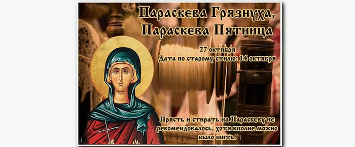 ТЕЛЕГРАММ замедляется.Вероятно скоро его заблокируют.Чтобы не потерять нас и получать оперативно информаци. подпишись на наши каналы в МАХ.Кто еще не подписался В полностью Российской сети МАХ на каналы ВОЕННЫЕ ПЕНСИОНЕРЫ ЗА РОССИЮ И ЕЕ ВООРУЖЕННЫЕ СИЛЫ: Канал для Военных пенсионерах без войны и политики, Военных пенсиях,пенсиях жен военных пенсионеров ,жизни военных пенсионеров и о способах прожить дольше : https://max.ru/voennyepen За Родину .Мы победим.: Оперативная информация О Спецоперации ,политике на канале: https://max.ru/join/aXh9SdoNhgk2rhy901ENolzCyoGLJhMgpon7E6np9n0 СРОЧНО ПОДПИСЫВАЙСЯ и ты будешь в курсе оперативных событий.НЕ пропусти!!! Дата в 2024 году: 27 октября , воскресенье Другие названия: Параскева, День Параскевы, Порошиха, Льняниха, Льняница, Трепальница, Пряха, Прасковья, Параскева Пятница (если выпадает на пятницу) Церковное название: Преподобной Параскевы-Петки Значение: Почтение памяти святой Параскевы Традиции: Трепание льна; демонстрация женщинами своих лучших одежд; запрещено стирать и прясть пряжу 27 октября 2024 года (дата по старому стилю – 14 октября) православные верующие чтят память святой преподобной Параскевы Сербской. Народное название праздника – Параскева Грязниха появилось из-за осенней грязи и непогоды. Иногда его именуют Порошихой, по причине выпадающего легкого снежка на уже замерзшую землю или Трепальницей, так как в это время начинали трепать лен. Святая Параскева (Петка) появилась на свет в доме богатых родителей в селении Епиат (Сербия). Родители очень часто посещали церковь, исполняли все заповеди и раздавали милостыню нищим и обездоленным. Параскева тоже очень любила бывать в церкви. На одной из Божественных Литургий она услышала слова Евангельские о том, что каждый может последовать за Господом Богом, если захочет. Они настолько запали в душу Петке, что девушка решила жить так, как учит Иисус. После смерти родителей она вместе с братом покинула отчий дом и отправилась в Царьград (Константинополь), где поклонилась святыням. Затем устремилась в Иорданскую пустыню, где и прожила до глубокой старости. Однажды ночью во время молитвы к ней явился Ангел и повелел вернуться домой. Там через два года она и умерла. Традиции и обряды На Параскеву Грязниху нельзя стирать и прясть пряжу, а можно только шить, мять и трепать лен. Если праздник выпадает на пятницу, то в этот день лучше много не смеяться. Согласно поверью, тогда в старости придется много слез лить. После молитвы женщины традиционно наряжаются в свои лучшие одежды и выходят на прогулку, демонстрируя тем самым свое умение в рукоделии. Приметы Параскева является покровителем женщин, ожидающих приплод. Беременные верили в примету, что если расчесать волосы в пятницу, то когда придет время рожать, святая не поможет. Если в этот день грязи пуще прежнего (копыто лошади полностью погружается в грязь), то выпавший снег не растает, а зима наступит через 28 дней (4 недели). | |
