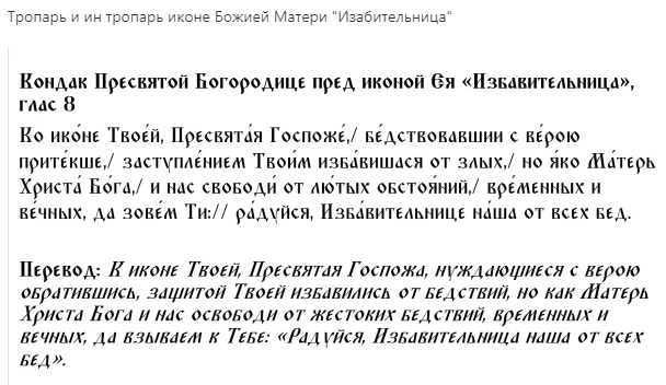 Праздник чудотворной иконы Божией Матери «Избавительница»