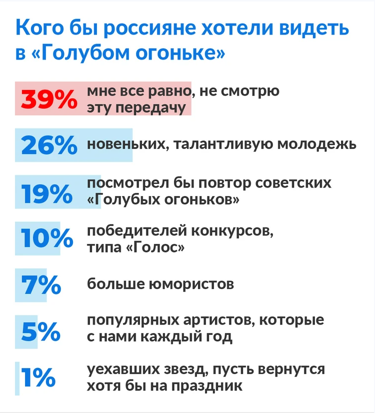 Россияне рассказали, какие артисты должны выступить в «Голубом огоньке»