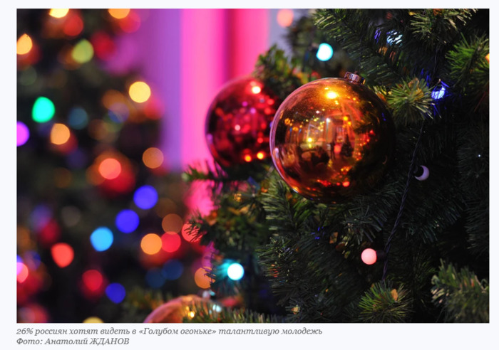 Кристина СОБОЛЕВА За месяц до Нового года объявлены имена ведущих главной праздничной передачи – «Голубого огонька». В этом году в главную ночь года с нами будут Татьяна Веденеева, Николай Басков, Мария Ситтель, Андрей Малахов и Дмитрий Губерниев. А тем временем россияне выразили пожелания, кого бы они хотели увидеть в этой праздничной программе. Согласно итогам опроса сайта KP.RU, 26% россиян хотели бы увидеть во время «Голубого огонька» новые лица, талантливых молодых исполнителей и музыкантов, а не приевшихся артистов, которые выступают из года в год. А вот 19% опрошенных, наоборот, хотели бы поностальгировать и пересмотреть огоньки советских времен. Именно тогда снимались самые лучшие передачи, уверены некоторые респонденты. 10% говорят, что хотели бы в новогоднюю ночь видеть выступления победителей различных конкурсов, например, шоу «Голос», откуда выходят действительно талантливые артисты. 7% опрошенных сказали, что им хочется больше юмористов, веселых номеров и пародийных песен. Это поможет еще больше поднять настроение в праздник. А вот популярных артистов, которые выступают в новогодних программах каждый год хотят видеть на экранах только 5% россиян. Остальные признаются, что уже устали смотреть одно и то же, поэтому им хватает чего-то нового. А вот 1% опрошенных даже вспомнили уехавших из России звезд, и признались, что хотели бы видеть их в праздник, ведь Новый год – время волшебства и добра. Однако большинство респондентов – целых 39% - сообщили, что им все равно, кого покажу в «Голубом огоньке», ведь они не смотрят эту передачу, кто-то даже добавил, что вообще не смотрит телевизор, тем более в новогоднюю ночь. «Многие уже не верят в эту передачу. Раньше она дарила ощущение праздника, сейчас – нет. Выученный сценарий, фонограмма, больше искусственного, чем натурального, а люди это хорошо чувствуют. Передачи не хватает искренности», - поделился своим мнением о «Голубом огоньке» участник исследования. Опрос проведен среди подписчиков сайта KP.RU в социальных сетях ВКонтакте и Одноклассники, а также в мессенджерах Telegram и Viber. Участие в исследовании приняли 8,2 тысячи человек. | |