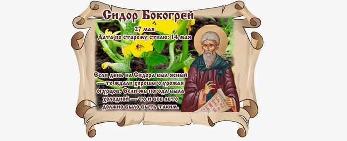 ТЕЛЕГРАММ замедляется.Вероятно скоро его заблокируют.Чтобы не потерять нас и получать оперативно информаци. подпишись на наши каналы в МАХ.Кто еще не подписался В полностью Российской сети МАХ на каналы ВОЕННЫЕ ПЕНСИОНЕРЫ ЗА РОССИЮ И ЕЕ ВООРУЖЕННЫЕ СИЛЫ: Канал для Военных пенсионерах без войны и политики, Военных пенсиях,пенсиях жен военных пенсионеров ,жизни военных пенсионеров и о способах прожить дольше : https://max.ru/voennyepen За Родину .Мы победим.: Оперативная информация О Спецоперации ,политике на канале: https://max.ru/join/aXh9SdoNhgk2rhy901ENolzCyoGLJhMgpon7E6np9n0 СРОЧНО ПОДПИСЫВАЙСЯ и ты будешь в курсе оперативных событий.НЕ пропусти!!! В Телеграмм создана группа " Военные пенсионеры за Россию и ее ВС. Мы победим". У кого есть Телеграмм просим вступить в нее. Там много интересного, срочного, очень оперативная информация, а также чего нельзя помещать в ОДНОКЛАССНИКАХ и на сайте. Вступить можно по ссылке: Военные пенсионеры за Россию и ее ВС. Мы победим "https://t.me/voenpenszaRossiu" Очень большая просьба НЕ ОТПИСЫВАТЬСЯ ОТ КАНАЛА, Канал работает в тестовом режиме. Мы стараемся понять, что Вам будет интересно читать и как работать дальше. Пишите, что бы Вам хотелось читать в ТЕЛЕГРАММ. Хоть в любой теме на сайте, хоть в Телеграмм. Чтобы не раздражали уведомления их можно ОТКЛЮЧИТЬ. Кого раздражают уведомления в Телеграмм их можно отключить. Отключить уведомления можно нажав на надпись ОТКЛЮЧИТЬ УВЕДОМЛЕНИЯ внизу Дата в 2025 году: 27 мая , вторник Другие названия: День Сидора Огуречника; Сидоры; День Сидора Сивера; Сидор-сивер; Исидоры; огуречник Церковное название: Мученика Исидора Хиосского и Исидора Твердислова, Ростовского чудотворца Значение: День памяти двух святых с именем Исидор Традиции: Высадка рассады огурцов; заговоры на богатство Народный праздник Сидор Бокогрей отмечается 27 мая 2025 года (дата по старому стилю – 14 мая). Верующие православной церкви в этот день чтут память мученика Исидора Хиосского и Исидора Твердислова, Ростовского чудотворца. «Бокогреем» люди назвали праздник потому, что с этого дня переставали дуть северные холодные ветра. История Мученик Исидор родился в III веке в Александрии. Позже переехал на остров Хиос. Служил в полку Римской империи. Как истинный христианин, был кротким мужчиной и вел благочестивый образ жизни. По приказу императора Декия православных людей принуждали поклоняться языческим божествам. Исидор избегал подобных действий, и на него донесли военачальнику Нумерию. Его арестовали и подвергли истязаниям. Во время пыток Исидор радостно славил Иисуса. Разгневанный военачальник приказал отрезать ему язык. Но он продолжал так же внятно произносить слова, а Нумерий потерял речь. После этого Исидора обезглавили и бросили его тело за городской стеной. Это случилось в 251 году. Останки мученика тайно похоронили христиане. Исидор Твердислов походил из богатой католической семьи, которая проживала в Германии. Он раздал свое наследство и отправился путешествовать по миру. Посетил Русь, принял православие и остановился в Ростове, в хлипкой лачуге из веток. Днем он проводил время на улицах города, а ночами возвращался в жилище и молился. За подвиг во имя Христа Исидор удостоился дара предвидения и чудотворения. Через время его стали почтительно называть Твердословом потому, что его слово было твердым. То, что он говорил, обязательно сбы
