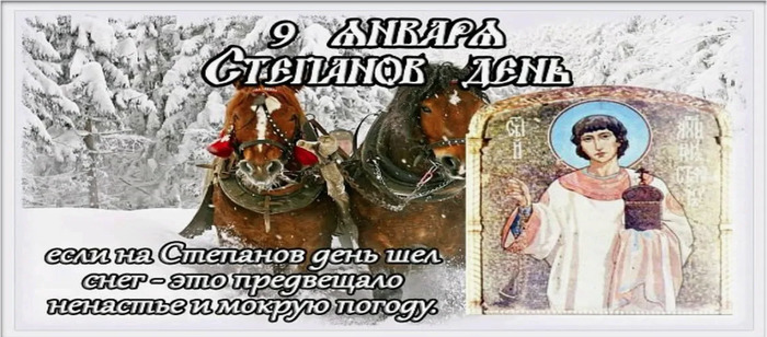 ТЕЛЕГРАММ замедляется.Вероятно скоро его заблокируют.Чтобы не потерять нас и получать оперативно информаци. подпишись на наши каналы в МАХ.Кто еще не подписался В полностью Российской сети МАХ на каналы ВОЕННЫЕ ПЕНСИОНЕРЫ ЗА РОССИЮ И ЕЕ ВООРУЖЕННЫЕ СИЛЫ: Канал для Военных пенсионерах без войны и политики, Военных пенсиях,пенсиях жен военных пенсионеров ,жизни военных пенсионеров и о способах прожить дольше : https://max.ru/voennyepen За Родину .Мы победим.: Оперативная информация О Спецоперации ,политике на канале: https://max.ru/join/aXh9SdoNhgk2rhy901ENolzCyoGLJhMgpon7E6np9n0 СРОЧНО ПОДПИСЫВАЙСЯ и ты будешь в курсе оперативных событий.НЕ пропусти!!! Дата в 2026 году: 9 января , пятница Другие названия: Степанов (Стефанов) день, Праздник пастухов, Степаны зимние, Святой Степан Церковное название: Первомученика апостола от 70-ти Стефана, архидиакона Значение: День памяти святого Стефана Традиции: расстановка по двору оберегов дома от злых сил; обряд освобождения сердец молодых девушек от грусти; заключение договора с пастухом Народный праздник Степановы труды в 2026 году отмечается 9 января (дата по старому стилю – 27 декабря). Верующие православной церкви в этот день чтут память первомученика апостола и архидиакона Стефана. Традиции и обряды праздника В этот народный праздник на Руси люди строгали колья и устанавливали их по углам двора. Они верили, что такой обряд поможет уберечь дом и его жителей от злых сил. Молодые девушки на Степановы труды хоронили свою грусть. Они выливали воду в специально подготовленную для этого чашу и таким образом освобождали свое сердце. В этот день нанимали для работы пастуха. Для этого собирались всей деревней и обсуждали каждую кандидатуру. Считалось, что пастухи обладают особыми знаниями и могут поладить с лешим. Если пастух может договориться с хозяином леса, значит, стадо будет в целости и сохранности. История жизни святого Стефана Стефан был евреем-эллинистом. Когда на апостолов сошел Святой Дух, христианская Церковь начала увеличивать свои границы. Одной из ее функций стала забота о вдовах, сиротах, бедных. Тогда апостолы предложили избрать из народа 7 человек, посвятить их в диаконы и сделать своими помощниками. Среди этих 7 мужей оказался Стефан. Его назначили архидиаконом, так как он больше всех обладал силой слова и верой. Вскоре все 7 диаконов стали проповедовать. Стефан начал вести проповеди в Иерусалиме. Умение высказываться и подкреплять свои дела чудесами и знамениями вызвали много негодования у фарисейцев. Стефана схватили и направили в высшее еврейское судилище. Они выставили ложных свидетелей, которые обвинили его в оскорблениях Бога и Моисея. Члены суда, выслушав очевидцев и самого Стефана, не поверили им и впали в ярость. Святому назначили казнь в виде закидывания камнями. Когда на него обрушился град камней, он вознес молитвы к Господу Богу, и тот принял его душу, тем самым показывая его чистоту перед ним. После смерти Стефана в Иерусалиме начались гонения на христиан. Приметы и поверья Идет снегопад – в лесах будет много ягод и грибов. Иней покрыл ветки деревьев – примета хорошего урожая зерна. Если вороны начали гнездиться не на деревьях, а на снегу, то вскоре наступит тепло. Лошадь фыркает либо на землю ложится – к теплу. Святой Стефан покровительствует домашней скотине, особенно лошадям. Если в этот день напоить жив