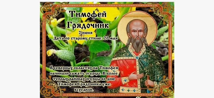 ТЕЛЕГРАММ замедляется.Вероятно скоро его заблокируют.Чтобы не потерять нас и получать оперативно информаци. подпишись на наши каналы в МАХ.Кто еще не подписался В полностью Российской сети МАХ на каналы ВОЕННЫЕ ПЕНСИОНЕРЫ ЗА РОССИЮ И ЕЕ ВООРУЖЕННЫЕ СИЛЫ: Канал для Военных пенсионерах без войны и политики, Военных пенсиях,пенсиях жен военных пенсионеров ,жизни военных пенсионеров и о способах прожить дольше : https://max.ru/voennyepen За Родину .Мы победим.: Оперативная информация О Спецоперации ,политике на канале: https://max.ru/join/aXh9SdoNhgk2rhy901ENolzCyoGLJhMgpon7E6np9n0 СРОЧНО ПОДПИСЫВАЙСЯ и ты будешь в курсе оперативных событий.НЕ пропусти!!! В Телеграмм создана группа " Военные пенсионеры за Россию и ее ВС. Мы победим". У кого есть Телеграмм просим вступить в нее. Там много интересного, срочного, очень оперативная информация, а также чего нельзя помещать в ОДНОКЛАССНИКАХ и на сайте. Вступить можно по ссылке: Военные пенсионеры за Россию и ее ВС. Мы победим "https://t.me/voenpenszaRossiu" Очень большая просьба НЕ ОТПИСЫВАТЬСЯ ОТ КАНАЛА, Канал работает в тестовом режиме. Мы стараемся понять, что Вам будет интересно читать и как работать дальше. Пишите, что бы Вам хотелось читать в ТЕЛЕГРАММ. Хоть в любой теме на сайте, хоть в Телеграмм. Чтобы не раздражали уведомления их можно ОТКЛЮЧИТЬ. Кого раздражают уведомления в Телеграмм их можно отключить. Отключить уведомления можно нажав на надпись ОТКЛЮЧИТЬ УВЕДОМЛЕНИЯ внизу Дата в 2025 году: 2 июня , понедельник Другие названия: Тимофей; грядочник; тепловей; Фалалей-тепловей; Фалалей-огуречник Церковное название: Благоверного князя Довмонта (во Святом Крещении Тимофея) Псковского Значение: Почтение памяти святого Тимофея, князя Псковского Традиции: Молитвы святому Тимофею о хорошем урожае; наблюдение за молодыми всходами посаженных культур Народный праздник Тимофей Грядочник отмечается 2 июня 2025 года (по старому стилю – 20 мая). В церковном календаре это дата почтения памяти святого Тимофея, князя Псковского, в миру благоверного князя Нальшанского Довмонта (Доманта). Праздник в народе назвали «Грядочником» потому, что он отмечается в фазу активных огородных работ. История Князь Довмонт родился в Литве в 1240 году. В 25 лет был вынужден покинуть отчизну, так как опасался за свою жизнь из-за междоусобных войн. Он взял дружину и весь свой род и убежал в город Псков, который стал для него второй родиной. Довмонт был ревностным язычником, но в Пскове решил стать христианином и принял святое Крещение с именем Тимофей. За год жизни в городе он доблестью и христианским милосердием снискал всеобщую любовь, преданность и уважение. Вскоре горожане единодушно выбрали его своим князем. 33 года он справедливо правил Псковом и отважно защищал своих подданных от неприятельских нападений. Довмонт взял в жены дочку князя Дмитрия и породнился с княжеским родом Александра Невского. Так он попал в летописи как славный защитник земли русской. Каждый раз, когда князю приходилось брать в руки оружие, он шел в храм и получал благословение своего духовника. Побеждая врага, благоверный Довмонт строил церковь или храм в честь святого, в день почтения памяти которого это произошло. Весной 1299 года он отразил нападение последний раз. Спустя несколько месяцев князь Псковский заболел и умер. Традиции и обряды В этот народный праздник принято молиться святому Тимофею о