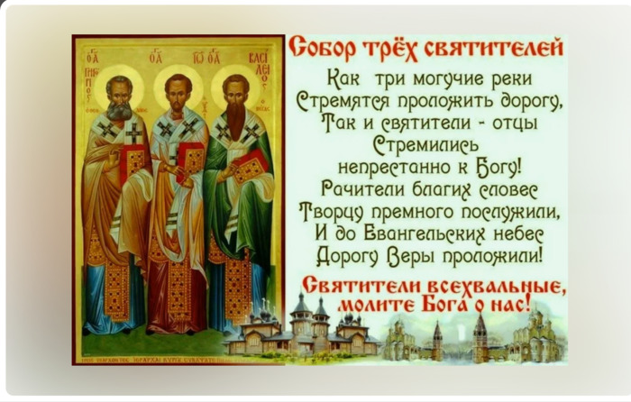 ТЕЛЕГРАММ замедляется.Вероятно скоро его заблокируют.Чтобы не потерять нас и получать оперативно информаци. подпишись на наши каналы в МАХ.Кто еще не подписался В полностью Российской сети МАХ на каналы ВОЕННЫЕ ПЕНСИОНЕРЫ ЗА РОССИЮ И ЕЕ ВООРУЖЕННЫЕ СИЛЫ: Канал для Военных пенсионерах без войны и политики, Военных пенсиях,пенсиях жен военных пенсионеров ,жизни военных пенсионеров и о способах прожить дольше : https://max.ru/voennyepen За Родину .Мы победим.: Оперативная информация О Спецоперации ,политике на канале: https://max.ru/join/aXh9SdoNhgk2rhy901ENolzCyoGLJhMgpon7E6np9n0 СРОЧНО ПОДПИСЫВАЙСЯ и ты будешь в курсе оперативных событий.НЕ пропусти!!! Дата в 2024 году: 12 февраля , понедельник Другие названия: Васильев день; Василий; Василий Великий; Василий теплый; звериный свадебник; звериный праздник Церковное название: Собор вселенских учителей и святителей Василия Великого, Григория Богослова и Иоанна Златоустого Значение: Почтение памяти трех вселенских учителей Традиции: Приготовление блюд из добытой дичи; запрещено прясть Трехсвятие отмечается 12 февраля 2024 года (по старому стилю – 30 января). В церковном календаре – это соборный праздник в честь трех главных мировых учителей, отцов Православной Церкви. В народе его прозвали звериным праздником. Считается, что в этот день у диких зверей начинаются брачные игры. Животные выбирают себе пару, происходят столкновения между самцами. История праздника В X столетии нашей эры в городе Константинополе произошел раскол веры. Просвещенные в вопросах веры мужи разделились на три противоборствующих лагеря. Причиной жаркого спора явились трое выдающихся отцов Церкви – Григорий Богослов, Иоанн Златоуст и Василий Великий. Каждый из трех враждующих лагерей старался доказать, что святой, которому они отдают предпочтение, важнее двух остальных. Вскоре эти распри поглотили всех жителей города. Повсюду разгорались несмолкаемые споры и ссоры, которым не было видно ни конца, ни края. Спор разрешили сами святые. Однажды глубокой ночью они все, сперва по очереди, а потом вместе, явились во сне митрополиту Евхаитинскому. Отцы Церкви объяснили, что ошибка людей в том, что они пытаются разъединить святых, являющихся единым целым. Поэтому лучше совершать память о них в один день. Так и появился праздник Трехсвятие. Традиции и обряды В народе праздник принято отмечать свежей дичью или блюдами из птицы. Такое застолье не обходится без охотничьих баек. В этот день нельзя заниматься пряжей. Приметы Если вороны громко кричат под самым домом и пытаются укрыться под стрехой амбара, значит, скоро будет вьюга. Если на снегу видны следы полевых мышей, то скоро будет потепление. Волки воют – жди похолодания. | |