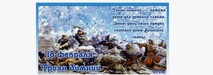 ТЕЛЕГРАММ замедляется.Вероятно скоро его заблокируют.Чтобы не потерять нас и получать оперативно информаци. подпишись на наши каналы в МАХ.Кто еще не подписался В полностью Российской сети МАХ на каналы ВОЕННЫЕ ПЕНСИОНЕРЫ ЗА РОССИЮ И ЕЕ ВООРУЖЕННЫЕ СИЛЫ: Канал для Военных пенсионерах без войны и политики, Военных пенсиях,пенсиях жен военных пенсионеров ,жизни военных пенсионеров и о способах прожить дольше : https://max.ru/voennyepen За Родину .Мы победим.: Оперативная информация О Спецоперации ,политике на канале: https://max.ru/join/aXh9SdoNhgk2rhy901ENolzCyoGLJhMgpon7E6np9n0 СРОЧНО ПОДПИСЫВАЙСЯ и ты будешь в курсе оперативных событий.НЕ пропусти!!! В Телеграмм создана группа " Военные пенсионеры за Россию и ее ВС. Мы победим". У кого есть Телеграмм просим вступить в нее. Там много интересного, срочного, очень оперативная информация, а также чего нельзя помещать в ОДНОКЛАССНИКАХ и на сайте. Вступить можно по ссылке: Военные пенсионеры за Россию и ее ВС. Мы победим "https://t.me/voenpenszaRossiu" Очень большая просьба НЕ ОТПИСЫВАТЬСЯ ОТ КАНАЛА, Канал работает в тестовом режиме. Мы стараемся понять, что Вам будет интересно читать и как работать дальше. Пишите, что бы Вам хотелось читать в ТЕЛЕГРАММ. Хоть в любой теме на сайте, хоть в Телеграмм. Чтобы не раздражали уведомления их можно ОТКЛЮЧИТЬ. Кого раздражают уведомления в Телеграмм их можно отключить. Отключить уведомления можно нажав на надпись ОТКЛЮЧИТЬ УВЕДОМЛЕНИЯ внизу Дата в 2025 году: 18 февраля , вторник Другие названия: Троян; Стрибожьи внуки; Поминовение павших у Трояного Вала; День русской воинской славы Значение: Победа русских воинов над римлянами у Трояного Вала 18.02.101 г. Традиции: Поминовение павших у Троянова Вала русских воинов Народный праздник Троян Зимний отмечается 18 февраля 2025 года. История праздника У древних славян этот день считался Днем воинской славы. Именно 18 февраля 101 года произошла битва русской дружины с римскими легионами у Трояного Вала в Придунайской области. Римляне ошибочно полагали, что завоевать русские земли будет легко. Но славянские ратники стали живой стеной и не уступили врагу ни клочка родной земли. Сражение описывается в священном славянском писании «Велесовой книге» и памятнике древнерусской литературы «Слове о походе Игоревом». Как гласят предания, много русских воинов осталось лежать в той земле. Своими жизнями они заплатили за свободу и жизнь потомков. Традиции и обряды В этот день по обычаю вспоминают всех воинов, павших на поле боя за правое дело. За них ставят свечи в церкви, поднимают поминальную рюмку. Приметы Если день выдался без снега, значит, лето будет засушливым. Если на Трояна стоит морозная погода, то скоро наступит весна, а летом будет мало дождей. Теплая погода говорит о том, что скоро наступит весна. Если температура резко понижается, значит, летом будет очень жарко. | |