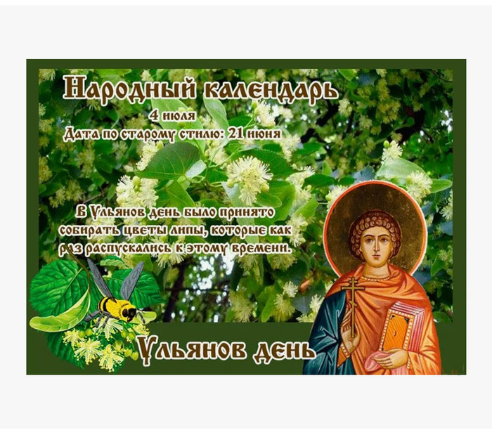 ТЕЛЕГРАММ замедляется.Вероятно скоро его заблокируют.Чтобы не потерять нас и получать оперативно информаци. подпишись на наши каналы в МАХ.Кто еще не подписался В полностью Российской сети МАХ на каналы ВОЕННЫЕ ПЕНСИОНЕРЫ ЗА РОССИЮ И ЕЕ ВООРУЖЕННЫЕ СИЛЫ: Канал для Военных пенсионерах без войны и политики, Военных пенсиях,пенсиях жен военных пенсионеров ,жизни военных пенсионеров и о способах прожить дольше : https://max.ru/voennyepen За Родину .Мы победим.: Оперативная информация О Спецоперации ,политике на канале: https://max.ru/join/aXh9SdoNhgk2rhy901ENolzCyoGLJhMgpon7E6np9n0 СРОЧНО ПОДПИСЫВАЙСЯ и ты будешь в курсе оперативных событий.НЕ пропусти!!! Дата в 2024 году: 4 июля , четверг Другие названия: День Ульяна; Ульян; Иулиан; Ульяндень; липов цвет Церковное название: Мученика Иулиана Тарсийского Значение: Почтение памяти мученика Иулиана Тарсийского Традиции: Сбор липового цвета Народный праздник Ульянов день отмечается 4 июля 2024 года (по старому стилю – 21 июня). В православном церковном календаре это дата почтения памяти мученика Иулиана Тарсийского. Поскольку славянам имя Иулиан было непривычным, в качестве названия народного праздника они выбрали ближайшее по созвучности с ним. История Иулиан родился в Киликии, провинции на юго-востоке Малой Азии, в знатной зажиточной семье приблизительно в 286 году. После смерти главы семейства они переехали в город Тарс, родину апостола Павла. Мать Иулиана направила всю свою любовь и заботу на единственного сына. Она была христианкой. Сына воспитывала в благочестии и смиренном послушании. Когда начались гонения на христиан, юношу, которому уже исполнилось 18 лет, схватили и привели к правителю города Маркиану. Долго он уговаривал Иулиана отречься от христианства и совершить ритуал жертвоприношения языческим богам. Ни уговоры, ни угрозы не смогли убедить юношу отступиться от Господа. Тогда его закрыли в темнице. Целый год язычники пытались переубедить Иулиана, переводя его из одной темницы в другую. Они надеялись, что его сердце дрогнет, и молодому христианину надоест быть узником, лишенным многих благ. Мать мученика боялась этого. Она следовала за ним и использовала всякую возможность укрепить веру сына, не дать ему совершить поступок, который погубит бессмертную душу. Когда мучителям надоело ждать, они посадили юношу в мешок и бросили в море. Это произошло в 305 году. Бездыханное тело мученика вынесло на берег Александрии, где его похоронили христиане. Традиции и обряды В этот народный праздник люди собирают липовый цвет. Он обладает чудодейственной целебной силой в этот день. Приметы и поверья Если с утра и до полудня ветер следует за солнцем, а после – в обратную сторону, то погода в ближайшие дни будет хорошей. Если после дождя парит, и солнце яркое и жаркое, то до ночи будут еще осадки. День подходит для борьбы с мучнистой росой на растениях. Липовый цвет 4 июля наделен целебной силой. Срубить в Ульянов день липу – не к добру: можно заблудиться в лесу или плутать всю жизнь. Если рядом с домом засохла липа, значит, в нем скоро наступят плохие перемены. | |