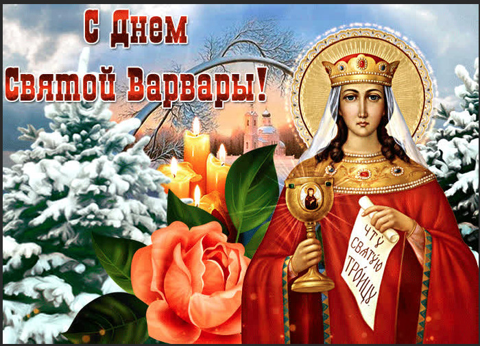 ТЕЛЕГРАММ замедляется.Вероятно скоро его заблокируют.Чтобы не потерять нас и получать оперативно информаци. подпишись на наши каналы в МАХ.Кто еще не подписался В полностью Российской сети МАХ на каналы ВОЕННЫЕ ПЕНСИОНЕРЫ ЗА РОССИЮ И ЕЕ ВООРУЖЕННЫЕ СИЛЫ: Канал для Военных пенсионерах без войны и политики, Военных пенсиях,пенсиях жен военных пенсионеров ,жизни военных пенсионеров и о способах прожить дольше : https://max.ru/voennyepen За Родину .Мы победим.: Оперативная информация О Спецоперации ,политике на канале: https://max.ru/join/aXh9SdoNhgk2rhy901ENolzCyoGLJhMgpon7E6np9n0 СРОЧНО ПОДПИСЫВАЙСЯ и ты будешь в курсе оперативных событий.НЕ пропусти!!! Дата в 2022 году: 17 декабря , суббота Другие названия: Варварины (Варваринские) морозы, Варвара зимняя, День Варвары, Заваруха, Бабий праздник, Варвара Мучельница Церковное название: Великомученицы Варвары и мученицы Иулиании Значение: День памяти святой Варвары Традиции: Молитвы о здоровье детей; начало подготовки к новогодним праздникам; запрещено прясть Народный праздник Варварин день отмечается 17 декабря 2022 года (по старому стилю – 4 декабря). В церковном календаре это дата почтения памяти святой Варвары Илиопольской. В простонародье этот день получил название Варварины морозы по причине прихода крепких морозов. Также его именуют Бабьим праздником, так как считается, что Варвара является заступницей беременных женщин либо тех, кто молится о здоровье детей. История Варвара родилась в городе Илиополе (Сирия) в конце III века в семье знатных язычников. После смерти матери отец выстроил башню-замок и заточил туда свою дочь, чтобы она не общалась с христианами. Часто Варвара сидела у окна и любовалась миром. Ей очень хотелось познать, кто сотворил такую красоту. А в это время отец мечтал выдать ее замуж. Заведя с ней разговор о замужестве, получил отказ, на что решил дать дочери разрешение покидать замок для общения с подругами. Он надеялся, что они смогут вразумить непокорную дочь. Однажды, во время нахождения отца в путешествии, Варвара познакомилась с христианками, которые ей и рассказали о Создателе. Вскоре она приняла крещение и решила посвятить свою жизнь Иисусу Христу. Узнав об этом, отец решил зарубить ее, но Варвара смогла сбежать и спрятаться в горах. Отец сумел найти дочь и вернуть домой. Поутру он привел ее на суд к правителю города, который пытался вразумить девушку отречься от христианства. Но ее воля была непоколебимой. Ни пытки, ни истязания не смогли сломить девушку, поэтому Варвара была заточена в темницу. Утром на теле мученицы не осталось и следа от пыток. Подвергнутая новым истязаниям, Варвара была собственноручно обезглавлена отцом. Традиции и обряды В этот день женщины традиционно молятся святой о послании здоровья детям и защите от несправедливости со стороны мужей и свекровей. Начинается подготовка к новогодним праздникам. Женщины готовят сладости: карамелизуют орехи в сахаре, варят в меду ягоды и фрукты, пекут пряники, делают леденцы. Мужчины варят пиво по особым рецептам. В этот день запрещается прясть. Приметы Если на Варвару стукнул мороз, то он простоит ближайшие дни. Если ночное небо тусклое (без звезд) – жди оттепель. Если дым, поднимающийся из трубы, стелется по земле, то вскоре холода отступят. Вечерний закат зацвел красными красками – жди морозного и ясного дня. А если закат заволокли облака