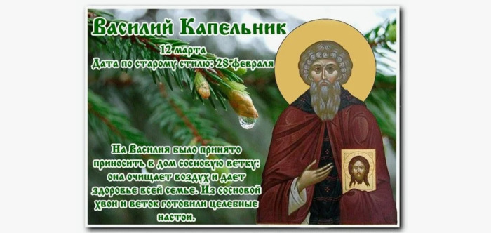 ТЕЛЕГРАММ замедляется.Вероятно скоро его заблокируют.Чтобы не потерять нас и получать оперативно информаци. подпишись на наши каналы в МАХ.Кто еще не подписался В полностью Российской сети МАХ на каналы ВОЕННЫЕ ПЕНСИОНЕРЫ ЗА РОССИЮ И ЕЕ ВООРУЖЕННЫЕ СИЛЫ: Канал для Военных пенсионерах без войны и политики, Военных пенсиях,пенсиях жен военных пенсионеров ,жизни военных пенсионеров и о способах прожить дольше : https://max.ru/voennyepen За Родину .Мы победим.: Оперативная информация О Спецоперации ,политике на канале: https://max.ru/join/aXh9SdoNhgk2rhy901ENolzCyoGLJhMgpon7E6np9n0 СРОЧНО ПОДПИСЫВАЙСЯ и ты будешь в курсе оперативных событий.НЕ пропусти!!! В Телеграмм создана группа " Военные пенсионеры за Россию и ее ВС. Мы победим". У кого есть Телеграмм просим вступить в нее. Там много интересного, срочного, очень оперативная информация, а также чего нельзя помещать в ОДНОКЛАССНИКАХ и на сайте. Вступить можно по ссылке: Военные пенсионеры за Россию и ее ВС. Мы победим "https://t.me/voenpenszaRossiu" Очень большая просьба НЕ ОТПИСЫВАТЬСЯ ОТ КАНАЛА, Канал работает в тестовом режиме. Мы стараемся понять, что Вам будет интересно читать и как работать дальше. Пишите, что бы Вам хотелось читать в ТЕЛЕГРАММ. Хоть в любой теме на сайте, хоть в Телеграмм. Чтобы не раздражали уведомления их можно ОТКЛЮЧИТЬ. Кого раздражают уведомления в Телеграмм их можно отключить. Отключить уведомления можно нажав на надпись ОТКЛЮЧИТЬ УВЕДОМЛЕНИЯ внизу Дата в 2025 году: 13 марта , четверг Другие названия: Солнечник; Плач зимы; Василий Исповедник; Васильев день; Василий теплый; Капитель; Каплюжник; Овечья одышка Церковное название: Преподобного Василия Декаполита Значение: Почтение памяти святого Василия исповедника из страны Декаполитской Традиции: Сбор почек хвойных деревьев; выпечка калачей; охота; лечение детей от водянки Народный праздник Василий Капельник отмечается 13 марта 2025 года (по старому стилю – 28 февраля). В православном календаре это дата почтения памяти преподобного Василия Декаполита. Название «Капельник» пошло от весенней капели, когда повсюду слышны звуки падающих капель от растаявшего снега на крышах. История Про почтенного Василия Декаполита известно немногое. Он жил в VII-VIII веках. Был монахом и христианским исповедником из страны Декаполитской. Во времена преследований почитателей святых икон его заточили в сырой темнице. После смерти правителя-иконоборца Льва Исаврянина – виновника ареста многих христиан, святой Василий получил свободу. Остальной его земной путь был наполнен монашескими делами, наставлениями людей на путь праведный и добродетельную жизнь. В 750 году преподобный Василий отошел в мир иной. Традиции и обряды 13 марта принято вносить в дом свежую еловую или сосновую ветку. Хвоя очищает воздух от зимы и дарит домочадцам здоровье. Также она применяется в виде витаминного отвара, который полезен маленьким детям и пожилым людям. Собранные в этот день почки хвойных деревьев хранят свои целебные свойства весь год. Девушки пекут калачи для родственников и друзей. Если с утра на голодный желудок съесть такой хлеб, то придет счастье и удача. Охотники на Василия Капельника редко возвращаются домой без хорошей добычи. Вечером устраиваются застолья с традиционными «правдивыми» байками. Раньше 13 марта лечили детей от водянки (народное название – овечья одышка) при помощи отары овец. 