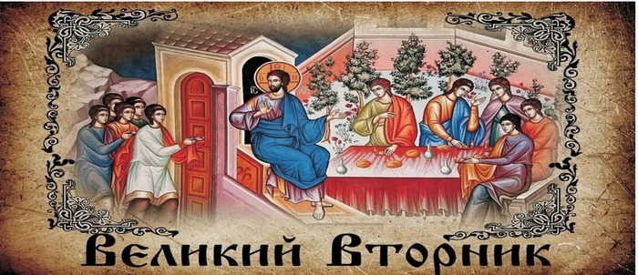 Дата в 2026 году: 7 апреля , вторник (вторник перед Пасхой) Другие названия: Страстной вторник; Чистый вторник; Великий вторник Страстной седмицы; Великий вторник перед Пасхой Церковное название: Великий вторник Значение: второй день Страстной недели, последней седмицы Великого поста Традиции: богослужения в храмах; перебирание одежды в гардеробе; приготовление соченого молока Великий вторник – народно-христианский праздник. Он отмечается в последний вторник перед Пасхой. Дата праздника в 2026 году – 7 апреля. Великий вторник – второй день Страстной недели, которая посвящена воспоминаниям о земных страданиях Иисуса Христа в последние дни Его жизни. Содержание статьи История праздника Утром во вторник перед Пасхой Иисус Христос проповедовал в Иерусалимском храме. Он рассказывал о Своем втором пришествии, притчи о дани кесарю, воскресении мертвых, Страшном суде, десяти девах, о талантах. Фарисеи пытались лукавыми вопросами смутить и обличить Спасителя. Но мудрость Его ответов не оставила им шансов. Традиции и обряды праздника В Великий вторник в храмах проходят богослужения: утреня, великопостные часы с чтением Евангелия, вечерня с литургией Преждеосвященных Даров, великое повечерие. В народе в этот день люди перебирают одежду в гардеробе: стирают, гладят и штопают, избавляются от ненужных вещей. Готовят наряд на Пасху. В некоторых регионах принято до рассвета готовить соченое молоко. Что можно кушать в Великий вторник В Великий вторник верующие соблюдают строгий пост. Согласно церковному уставу, в этот день разрешается употреблять невареную пищу растительного происхождения: хлеб, воду, соль, сырые овощи и фрукты, сухофрукты, мед, орехи. Что нельзя делать в Великий вторник По церковным правилам, в этот праздник запрещается ругаться, нецензурно выражаться, думать о плохом. Нельзя веселиться: петь, танцевать. Приметы и поверья на Великий вторник Сырой день – к урожаю грибов. Если животное умыть талым снегом в Великий вторник, то оно не будет болеть весь год. Если на заре напоить скотину и домашних животных соченым молоком – это убережет их от болезней на год. | |