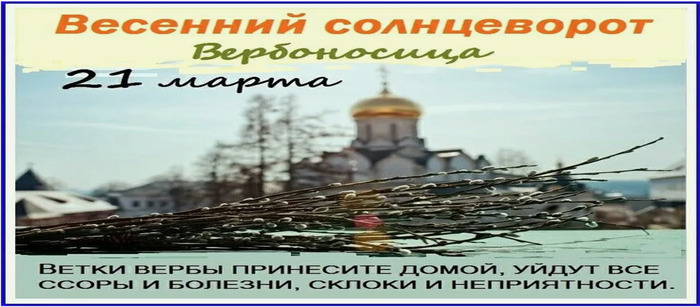Дата в 2026 году: 21 марта , суббота Другие названия: День весеннего равноденствия; Вербоносица; Вербоносный день Значение: Весеннее равноденствие; день вербы Традиции: Выпечка из теста фигурок в виде птиц; гадания на будущее и на любовь; размещение веток вербы в доме Весенний солнцеворот отмечается 21 марта 2026 года (дата по старому стилю – 8 марта). Праздник посвящен равной продолжительности дня и ночи. Название «Вербоносица» он получил за то, что к этой дате обычно распускается верба. Растению приписывали магическую силу. Традиции и обряды На Весенний солнцеворот выпекают из теста фигурки в виде птиц. Считается, что если их подкидывать вверх, а затем ловить, то это привлечет в жизнь счастье, достаток, здоровье и благополучие. Распространены гадания с использованием печенья «жаворонка». При его выпекании в тесто добавляют разные мелкие неострые предметы с обязательным пояснением, что они означают. Затем выбирается печенье и приоткрывается завеса ближайшего будущего. Гадают 21 марта и на любовь. В давние времена существовала традиция в этот день раскрашивать яйца: наносить на них специальные знаки, которые олицетворяют землю, солнце, плодородие и новую жизнь. С помощью таких яиц предки изготавливали защитные обереги и талисманы. Сейчас так поступают на Пасху, причем смысл во многом схож со старославянским языческим ритуалом. По народному поверью, в этот день из теплых стран возвращаются жаворонки. Этих птиц почитают как райских посланников, которые несут на своих крыльях тепло. Вербу, которая к этому сроку уже обычно распускается, приносят в дом и с особым почетом размещают на видном месте. Чаще всего ее ставят в вазу у икон, причем без воды. Такое почтение связано с поверьем, что растение способно очистить и оградить в будущем жилье от ссор, болезней, семейных разладов и прочих неприятностей. Приметы День окутан туманом, значит, будут заморозки. Какая погода стоит весь день, такими будут и три летних месяца. Если с южной стороны много птичьих гнезд, значит, лето будет холодным. Жаворонки вернулись домой – весна будет теплой. Если отхлестать вербой больного, то он выздоровеет, а здоровый болеть не будет. Веточка вербы, срезанная в этот день, очистит дом от множества горестей и печалей. Сажать вербу на своем дворе – смерть накликать. | |