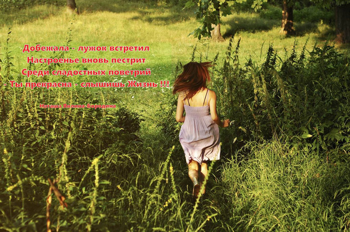 ТЕЛЕГРАММ замедляется.Вероятно скоро его заблокируют.Чтобы не потерять нас и получать оперативно информаци. подпишись на наши каналы в МАХ.Кто еще не подписался В полностью Российской сети МАХ на каналы ВОЕННЫЕ ПЕНСИОНЕРЫ ЗА РОССИЮ И ЕЕ ВООРУЖЕННЫЕ СИЛЫ: Канал для Военных пенсионерах без войны и политики, Военных пенсиях,пенсиях жен военных пенсионеров ,жизни военных пенсионеров и о способах прожить дольше : https://max.ru/voennyepen За Родину .Мы победим.: Оперативная информация О Спецоперации ,политике на канале: https://max.ru/join/aXh9SdoNhgk2rhy901ENolzCyoGLJhMgpon7E6np9n0 СРОЧНО ПОДПИСЫВАЙСЯ и ты будешь в курсе оперативных событий.НЕ пропусти!!! Все мы дети Природы!!! По дощечкам деревянным Прык да скок - веди настил К травкам полевым духмяным, Лужок знаю загрустил Без меня - ну, что поделать Телепатией живем Мы с Природой! - Много света Отдает она потом Всем при встрече - знай лаская, Успокаивая так, А мы нежность ей плеская Изрекаем много фраз Из души, что нежно льются Так с Природой и живем: Раскрасивой, многозвучной Часто называя сном Ее славные красоты Куда входят и дары : Щебет птичек, небосводы, Ягодки, цветы, грибы..! Вот такая она наша Житница всего и вся - Присмотрись к речушке, пашне Вмиг затронет суть тебя Всей, всей нужности Природы Потому и береги : Воду, лес, поля все всходы В этом всем и есть вся Жизнь Наша - слышите Земляне, Вырубать леса - позор, Тем кто с пользой не считаясь Миллионный аж вагон Бревен грузят на отправку - Хищник - эй остановись За такую переправку Ты ответишь и седым, Когда Божий суд враз спросит О деяниях твоих, Потому : весной иль в осень Хоть уж часть восстанови Спиленных лесопосадок И в другом свой ум включи Тогда будет всем отрада Вот к Природе всей ключи... Добежала - лужок встретил Настроенье вновь пестрит Среди сладостных поветрий - Ты прекрасна - слышишь Жизнь !!! Наташа Яклина-Бородина | |