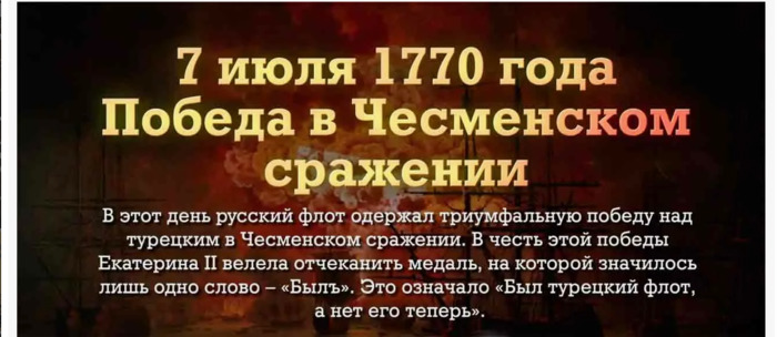 ТЕЛЕГРАММ замедляется.Вероятно скоро его заблокируют.Чтобы не потерять нас и получать оперативно информаци. подпишись на наши каналы в МАХ.Кто еще не подписался В полностью Российской сети МАХ на каналы ВОЕННЫЕ ПЕНСИОНЕРЫ ЗА РОССИЮ И ЕЕ ВООРУЖЕННЫЕ СИЛЫ: Канал для Военных пенсионерах без войны и политики, Военных пенсиях,пенсиях жен военных пенсионеров ,жизни военных пенсионеров и о способах прожить дольше : https://max.ru/voennyepen За Родину .Мы победим.: Оперативная информация О Спецоперации ,политике на канале: https://max.ru/join/aXh9SdoNhgk2rhy901ENolzCyoGLJhMgpon7E6np9n0 СРОЧНО ПОДПИСЫВАЙСЯ и ты будешь в курсе оперативных событий.НЕ пропусти!!! В Телеграмм создана группа " Военные пенсионеры за Россию и ее ВС. Мы победим". У кого есть Телеграмм просим вступить в нее. Там много интересного, срочного, очень оперативная информация, а также чего нельзя помещать в ОДНОКЛАССНИКАХ и на сайте. Вступить можно по ссылке: Военные пенсионеры за Россию и ее ВС. Мы победим "https://t.me/voenpenszaRossiu" Очень большая просьба НЕ ОТПИСЫВАТЬСЯ ОТ КАНАЛА, Канал работает в тестовом режиме. Мы стараемся понять, что Вам будет интересно читать и как работать дальше. Пишите, что бы Вам хотелось читать в ТЕЛЕГРАММ. Хоть в любой теме на сайте, хоть в Телеграмм. Чтобы не раздражали уведомления их можно ОТКЛЮЧИТЬ. Кого раздражают уведомления в Телеграмм их можно отключить. Отключить уведомления можно нажав на надпись ОТКЛЮЧИТЬ УВЕДОМЛЕНИЯ внизу Защитники земли русской: как флот графа Орлова разбил турок в Чесменском сражении Каждый год 7 июля отмечается один из дней воинской славы России. В этот день 255 лет назад русский флот под командованием графа Алексея Орлова одержал одну из важнейших побед в своей истории, разгромив в Эгейском море превосходящую по численности эскадру Османской империи. Этот триумф в значительной мере определил исход Русско-турецкой войны 1768-1774 годов, содействовал заключению Кючук-Кайнарджийского мирного договора и в дальнейшем включения Крыма в состав России. Спецпроект сайта РИА Новости Крым "Защитники земли русской" посвящен героическим подвигам воинов, защищавших русскую землю и ее народ на протяжении многовековой истории нашей страны. Их доблесть, отвага и смелость навсегда вписаны в летопись воинской славы России. Проект приурочен к Году защитника Отечества. Предпосылки и ход Русско-турецкой войны Очередная, шестая по счету, война между Россией и Турцией началась в сентябре 1768 года и стала одной из наиболее значимых и судьбоносных для нашей страны в многовековом противостоянии с османами. Российской империи было стратегически важно приобрести выход в Черное море, а Стамбул рассчитывал получить обещанные ей Барской конфедерацией Подолию и Волынь, расширить свои владения в Северном Причерноморье и на Кавказе, а также установить протекторат над Речью Посполитой. Турок к войне активно подталкивали Франция и Австрия, а также протурецки настроенная часть польской элиты. Они активно препятствовали усилению России в черноморском, а следовательно, и в средиземноморском регионах. В результате Турция в сентябре 1768 года объявила войну России под предлогом того, что Петербург якобы вмешивается во внутренние дела Речи Посполитой и строит крепости вблизи османских границ. В ноябре Екатерина II созвала заседание Государственного Совета, по итогам которого своим манифестом 